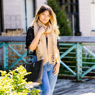 - IN-HOUSE DESIGN: The camel beige brown features purposefully made holes and rips for a fashionable fall and winter statement piece. Excellent for covering your chest, neck, and shoulders for added warmth during the cooler and coldest months of the year.