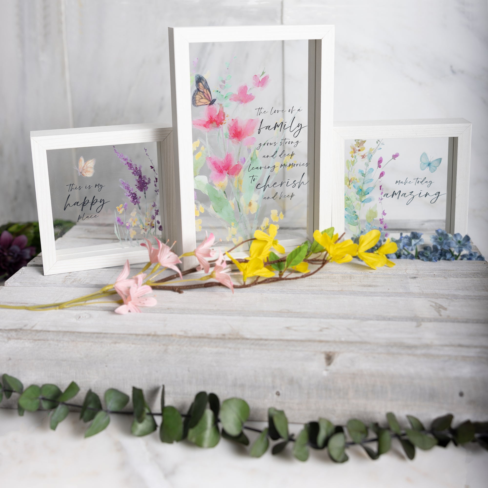 - IN-HOUSE DESIGN: Green, blue, and purple watercolor paint-inspired flowers with a teal butterfly are accompanied by a "Make Today Amazing" sentiment-printed decal on the front side of the see-through glass. The artwork was designed by AmyLee Weeks, who sees the beauty in everyday life.