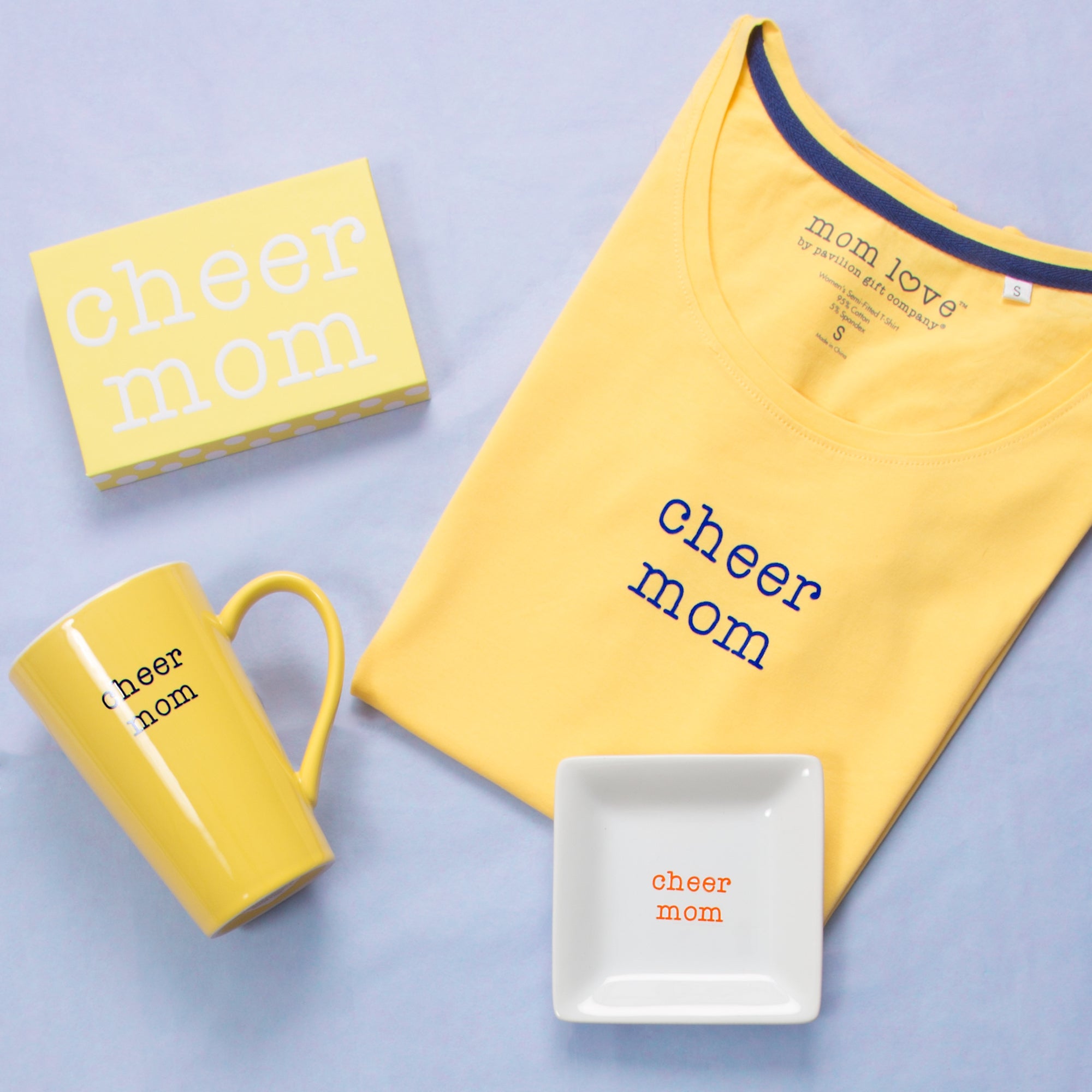 - IN-HOUSE DESIGN: "Cheer Mom" text is printed onto the front of the shirt.