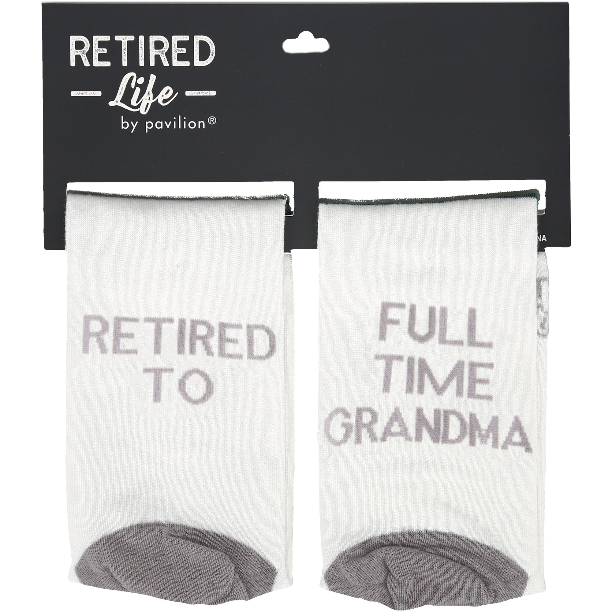 - IN-HOUSE DESIGN: "Retired To Full Time Grandma" text is knitted into the material of the base of the socks, while "Retired Life" text is knitted into the outside ankle.