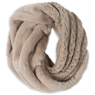 - PREMIUM QUALITY: Infinity scarf, packaged in a plastic polybag, is made from faux fur and acrylic.