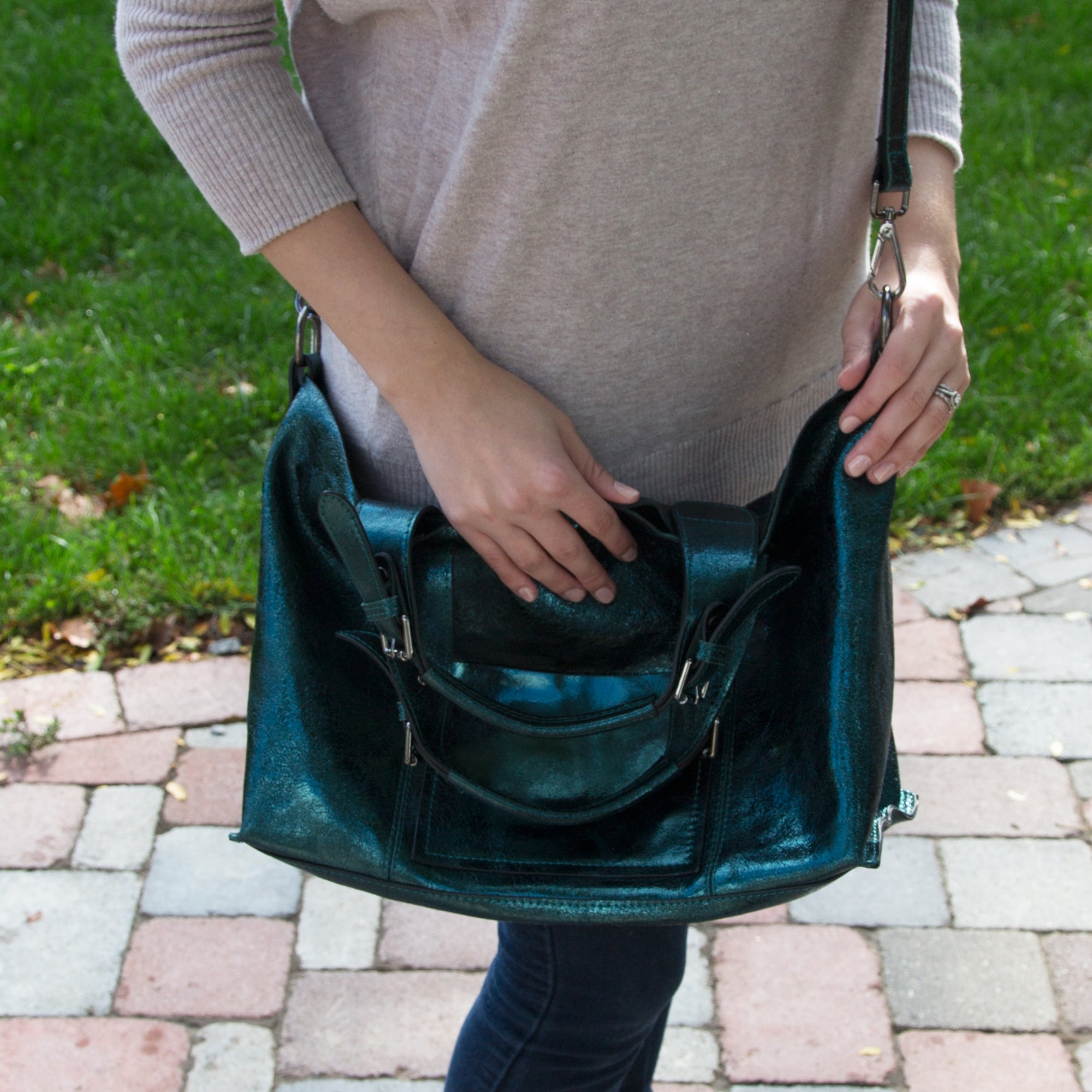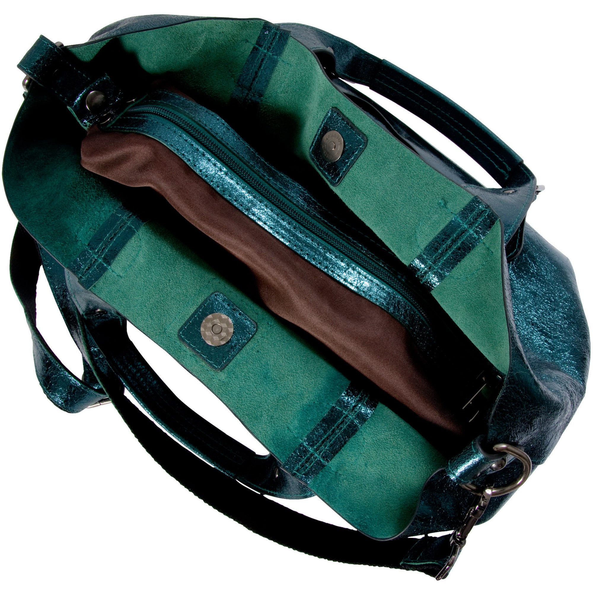 - PREMIUM QUALITY Large bag, packaged in a plastic polybag, is made from 100% real leather and features a snap and zipper closure.