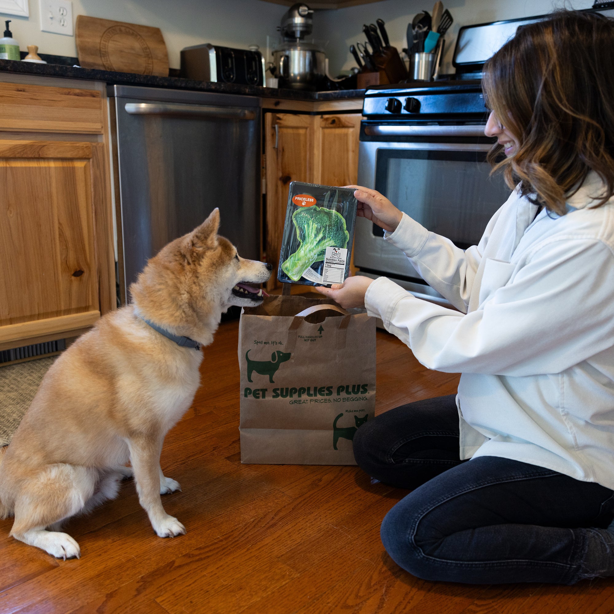 • IN-HOUSE DESIGN: The photo-realistic print is on both sides. A Red oval "Priceless" sticker is accompanied by a "Nutrition Facts" sticker, which includes 100% loyalty, cuddles, treats, pets, cuteness, fluffiness, zoomies, and appetite. It is packaged in a black Styrofoam tray wrapped in plastic wrap with a J-hook.