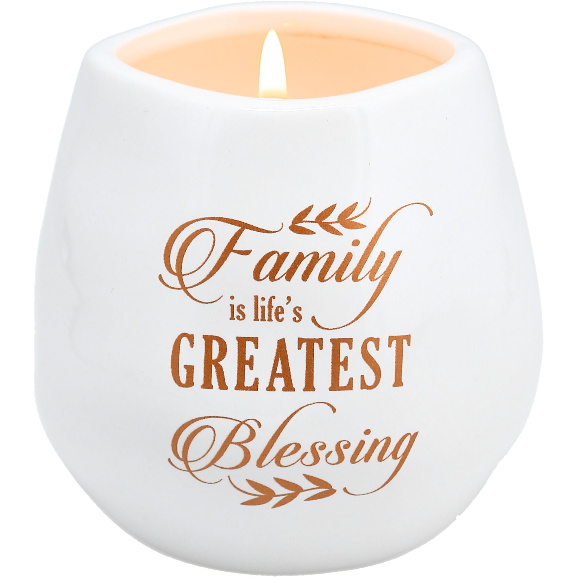 - IN-HOUSE DESIGN: Sparkly bronze leaf pattern is accompanied by "Family Is Life's Greatest Blessing" sentiment shimmery decal on the front side of the glossy white vessel. The artwork was created with simplistic natural tones to fit into any home.