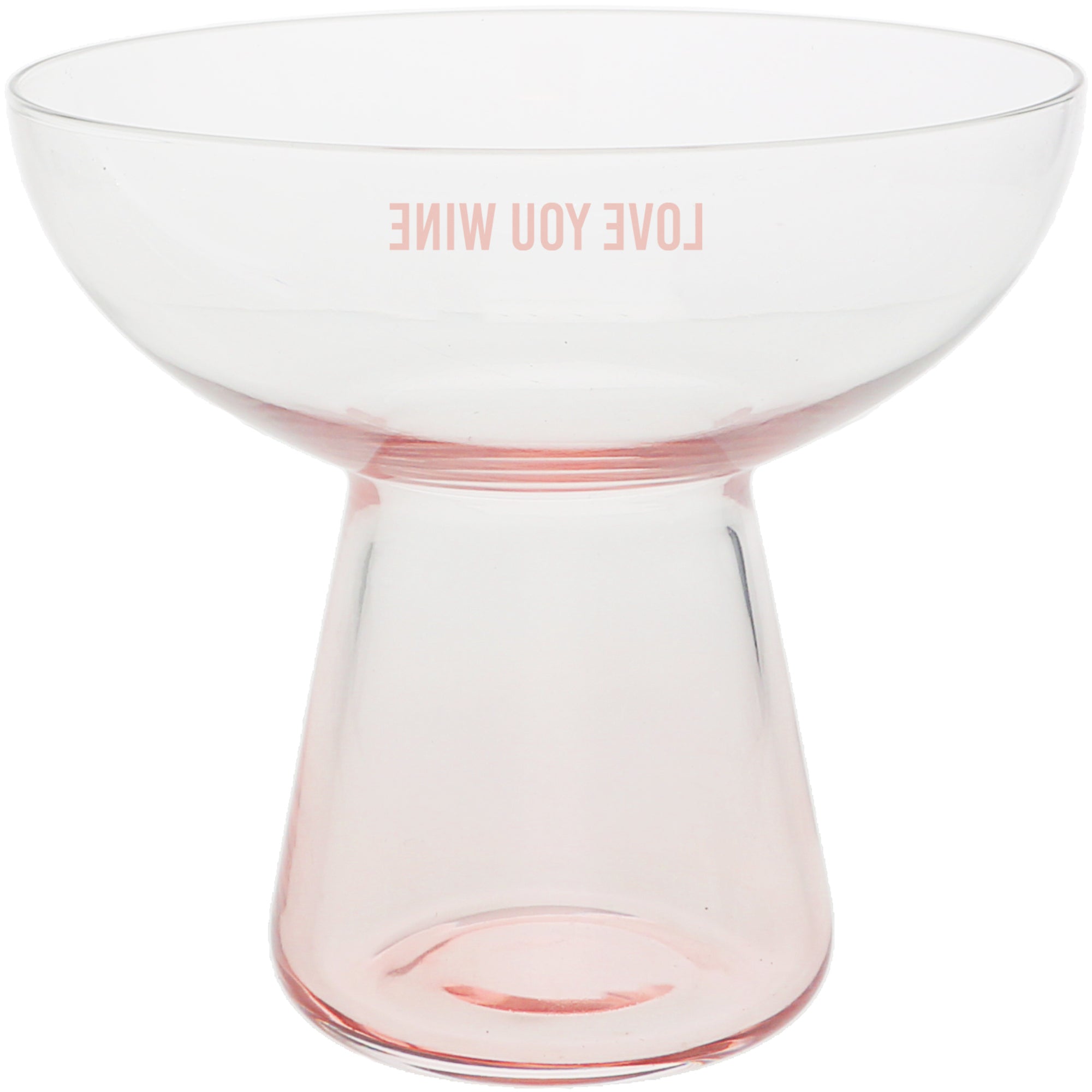 - IN-HOUSE DESIGN: The glass is clear at the top and becomes see-through pink through an ombre fade at the bottom. The sentiment "Love You Wine" is printed on the exterior edge of the back of the brim.