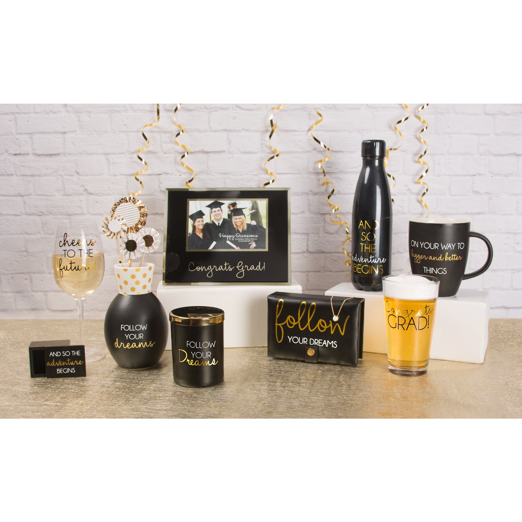 - IN-HOUSE DESIGN: "Follow Your Dreams" text is printed onto the front of the vase, while the gold dot design is printed all around the top of the vase.
