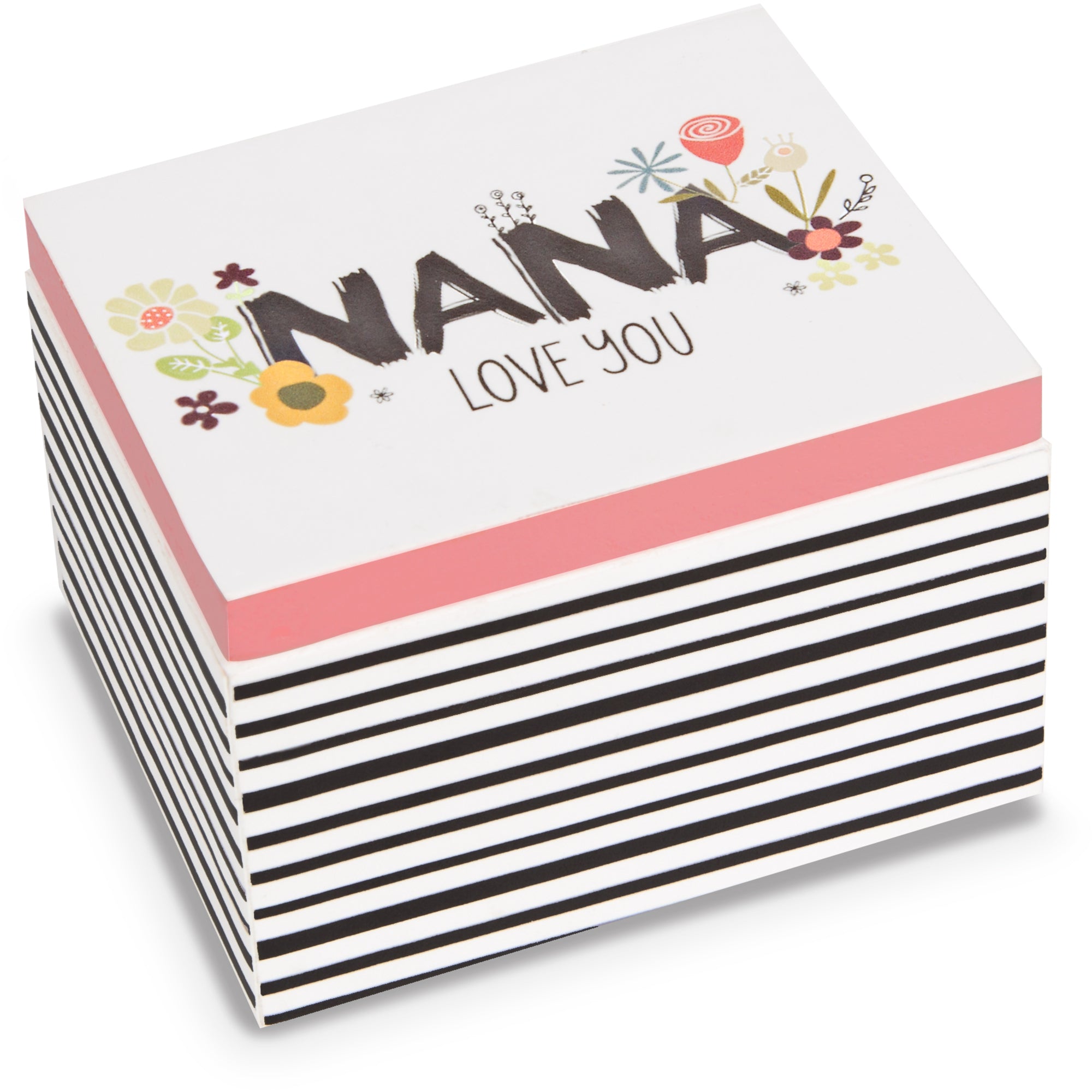- IN-HOUSE DESIGN: Designed by Amylee Weeks, "Nana; Love You" text and accompanying floral design are both printed onto the box.