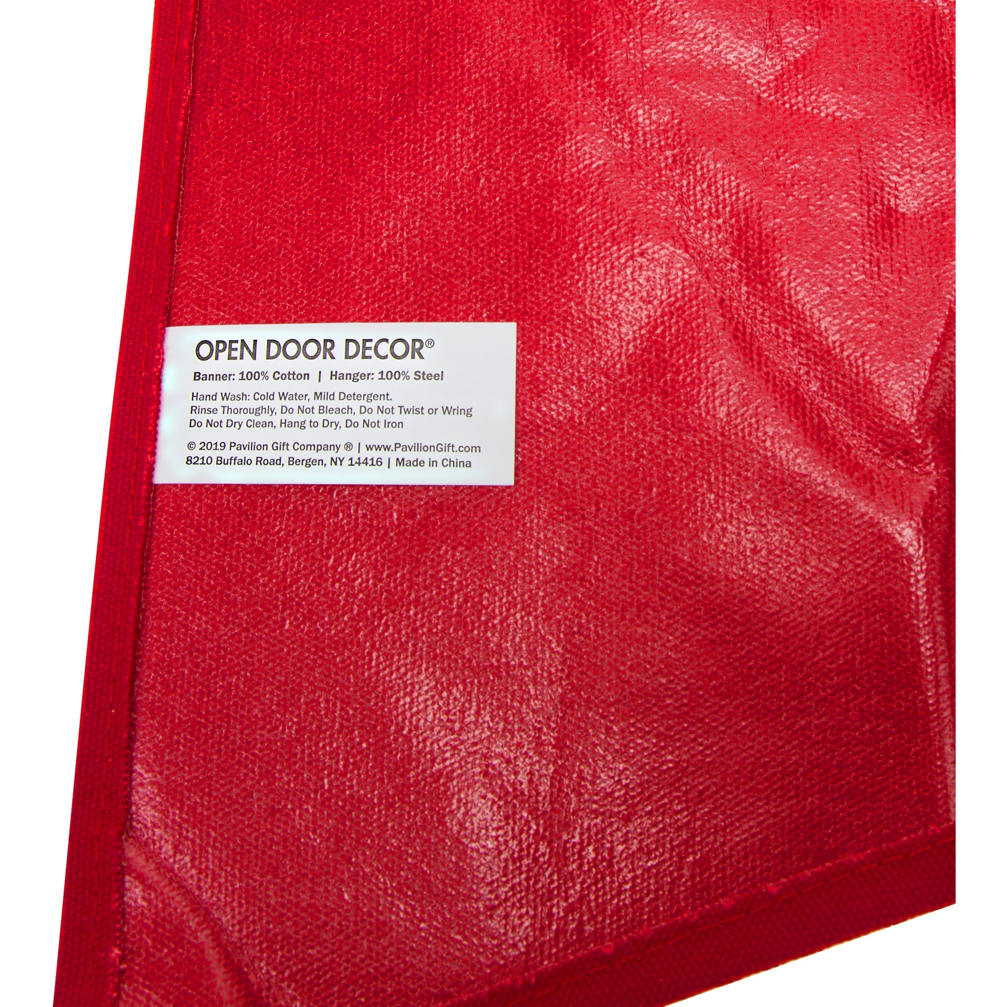 - PREMIUM QUALITY: 24" banner with Christmas tree-shaped hanger, packaged securely in a plastic polybag with cardboard hangtag, is made from 100% cotton canvas with a PVC backing and Velcro and features a curved steel hanger.
