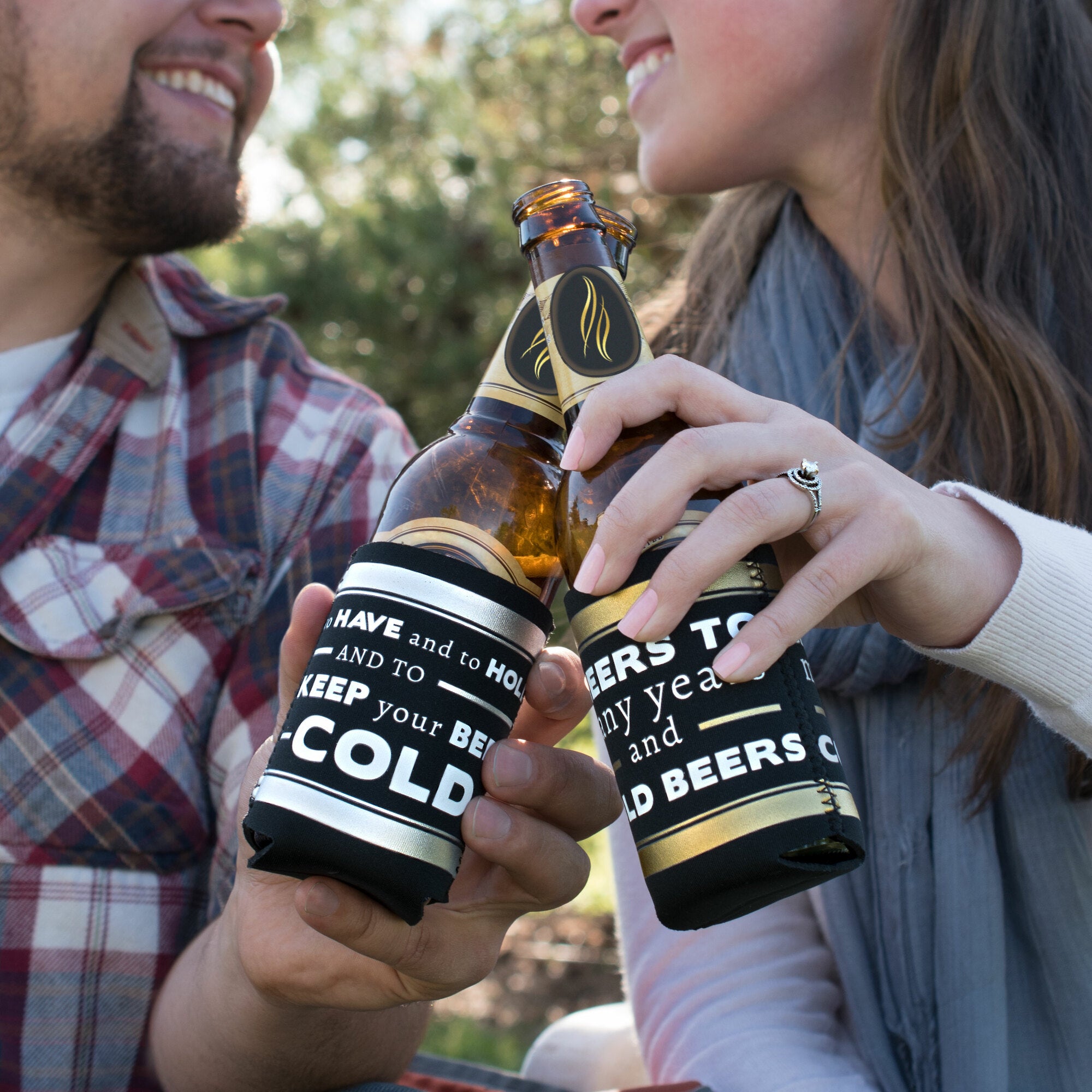 • IN-HOUSE DESIGN: "To Have And To Hold And To Keep Your Beer Cold" text is printed onto the coozie.