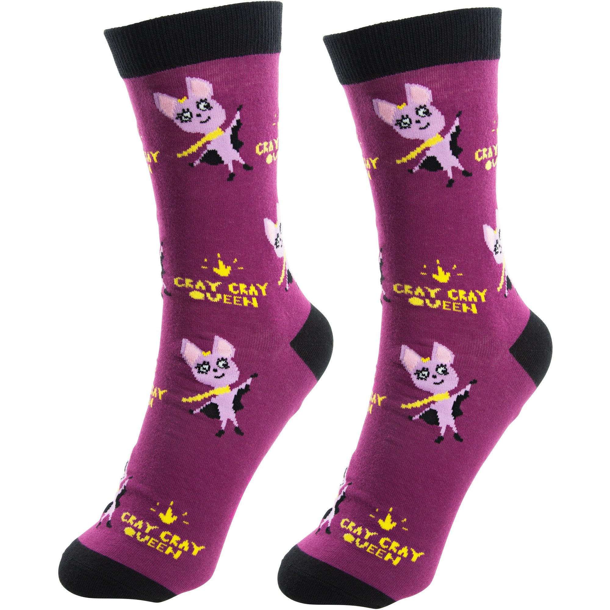 - IN-HOUSE DESIGN: "Bat Shit Crazy!" text is sewn into the base of the socks and is accompanied by a bat pattern with "Cray Cray Queen" text.
