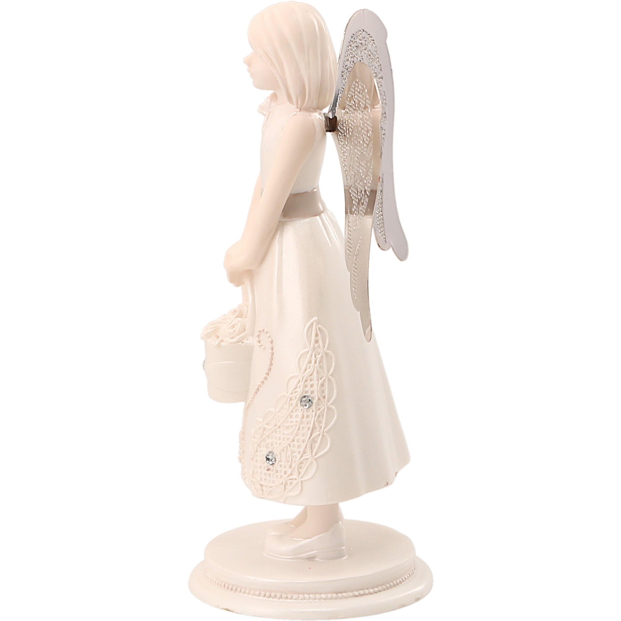 - PREMIUM QUALITY: 4.25" angel figurine, packaged in a printed box, is made from polyresin and features finely meshed silver-plated wings.