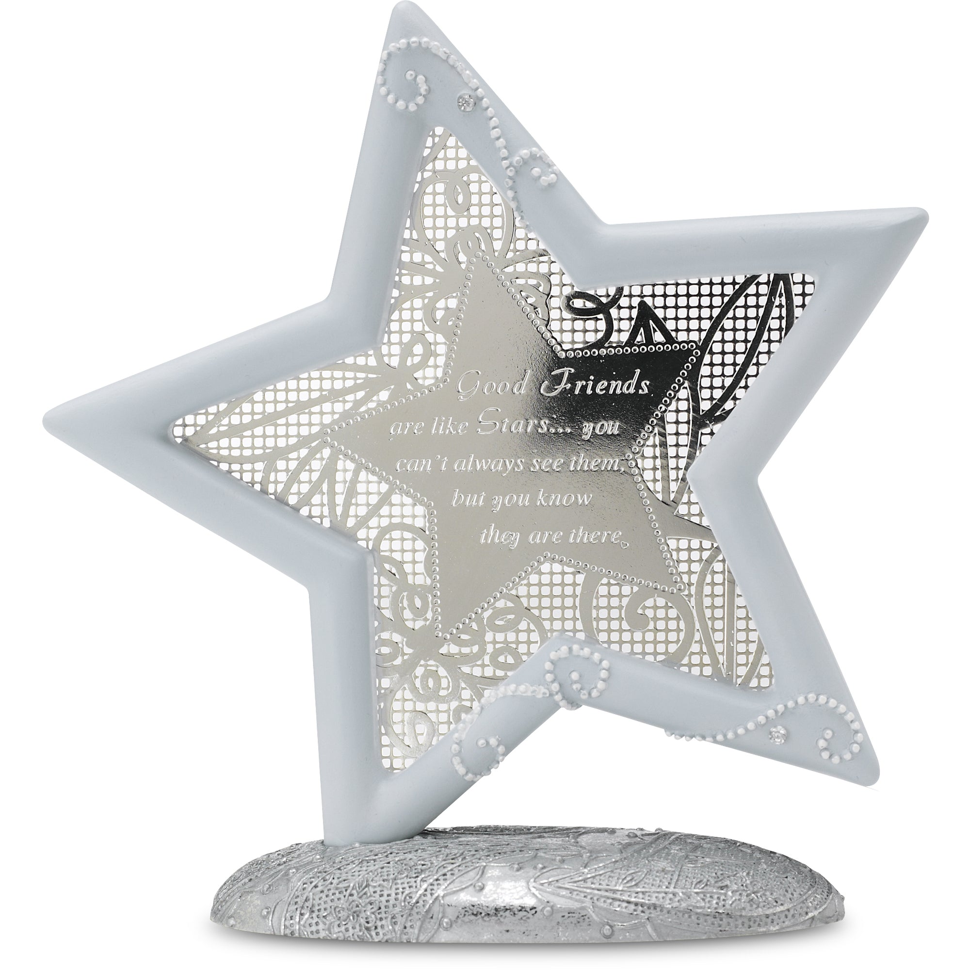 - IN-HOUSE DESIGN: "Good Friends Are Like Stars... You Don't Always See Them, But You Know They Are There" text is engraved into the star.