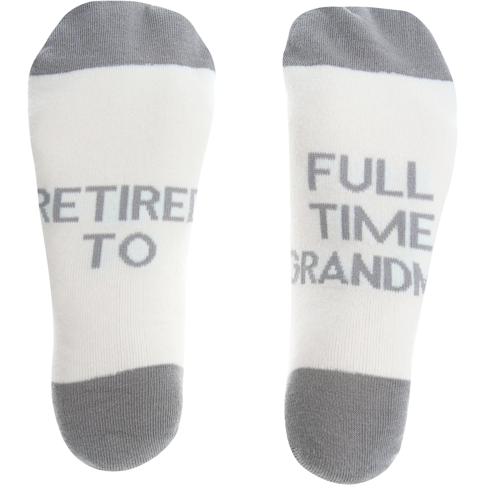 - IN-HOUSE DESIGN: "Retired To Full Time Grandma" text is knitted into the material of the base of the socks, while "Retired Life" text is knitted into the outside ankle.