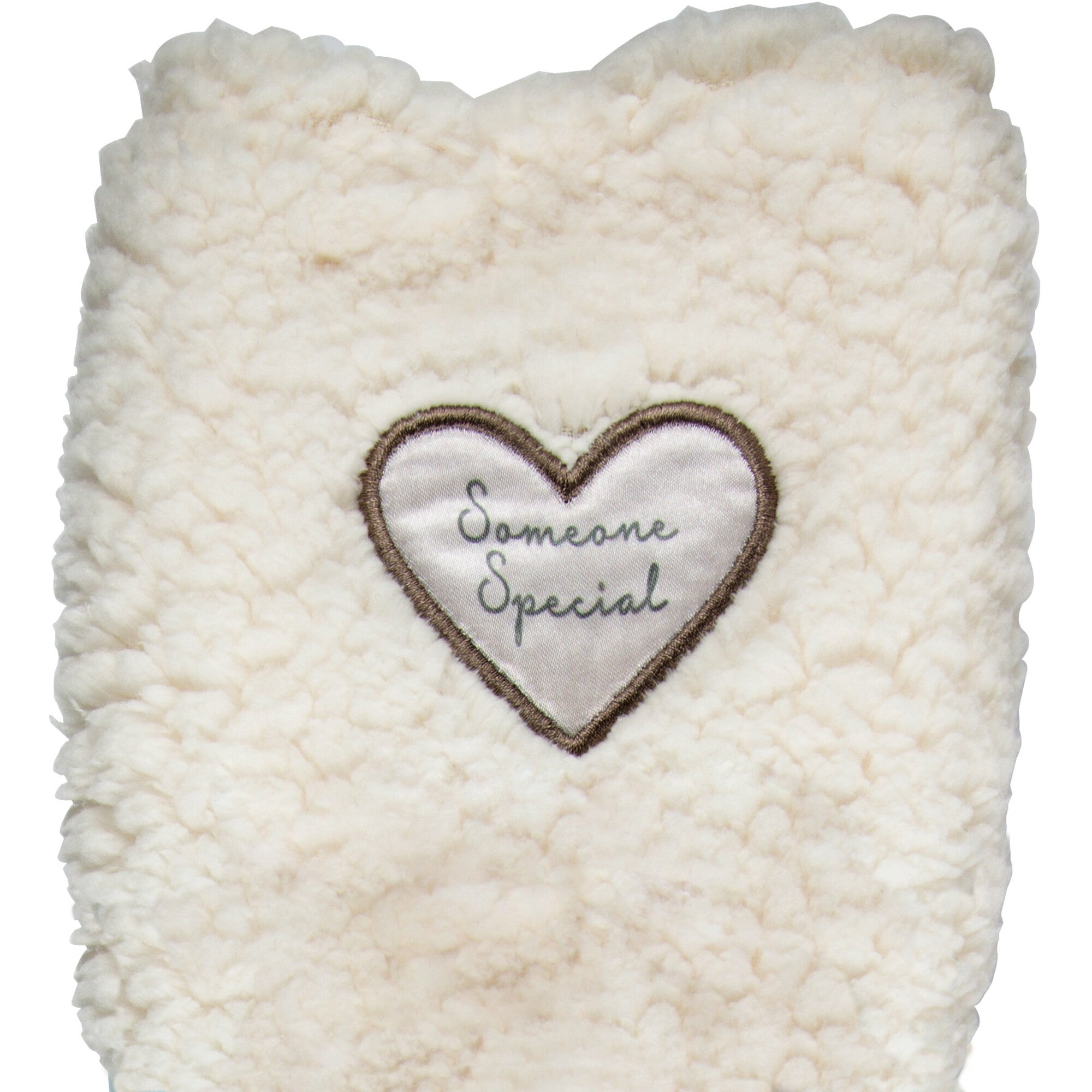 • IN-HOUSE DESIGN: "Someone Special" text is printed onto an embroidered heart on the ankle of each slipper.