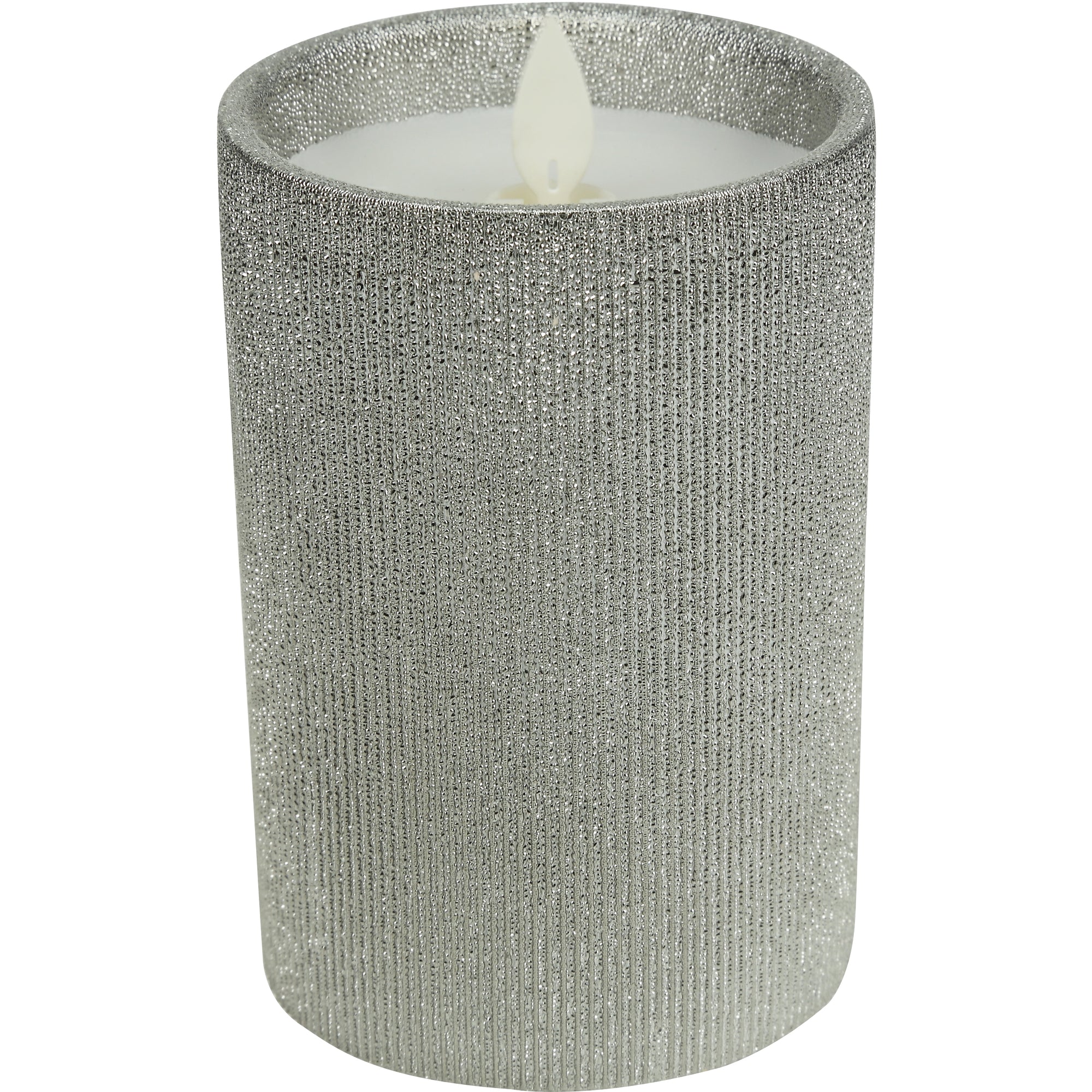 - IN-HOUSE DESIGN: "Love Lives Here" foil-wrapped text label is wrapped around the glitter candle using a silver cord.