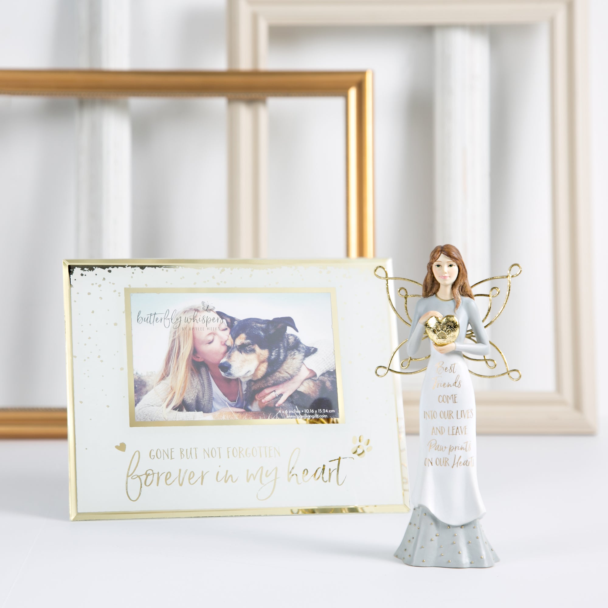 - IN-HOUSE DESIGN: Designed by Amylee Weeks, "Best Friends Come Into Our Lives And Leave Pawprints On Our Hearts" text and accompanying heart detailing are both hand-painted onto the angel.