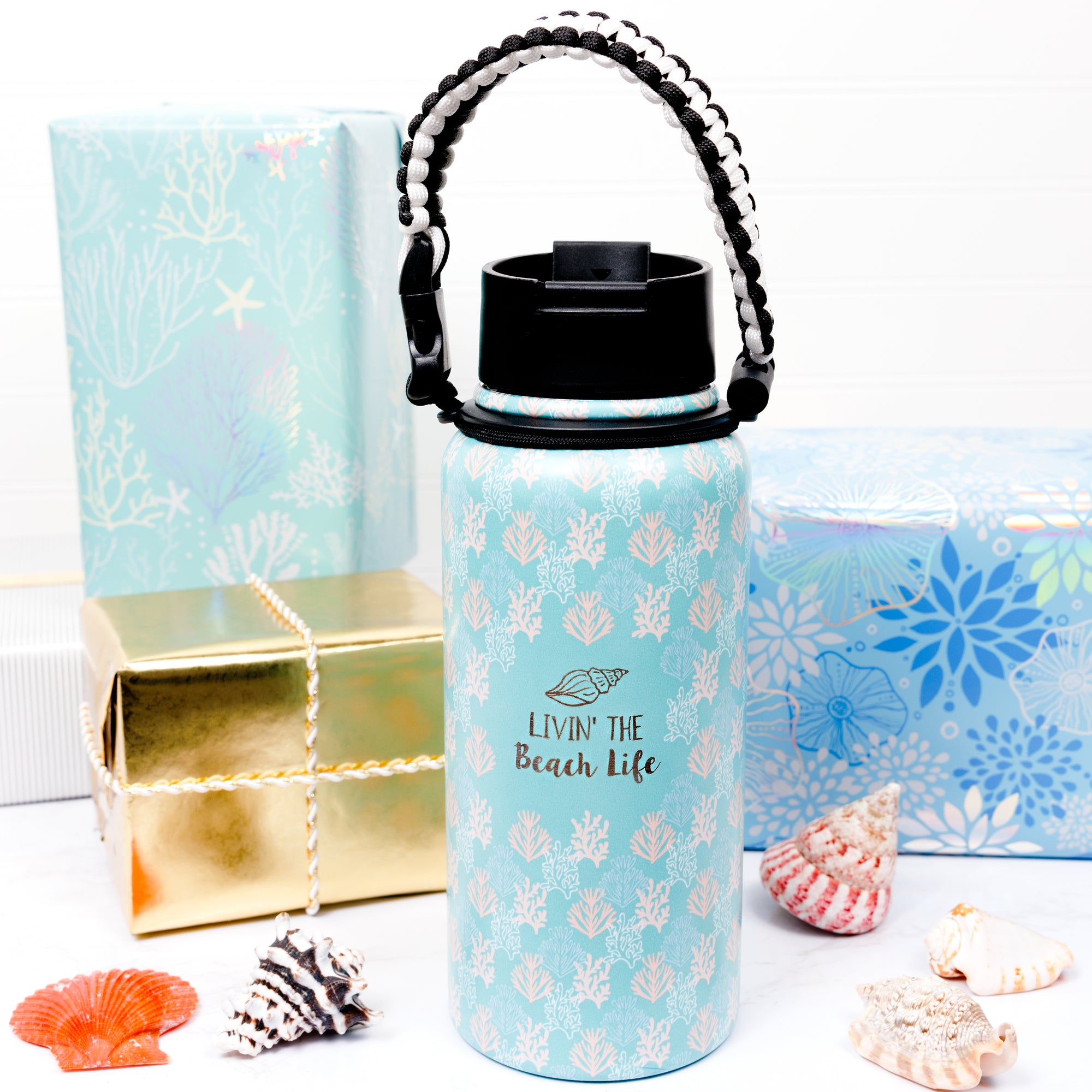 - IN-HOUSE DESIGN: The wrap-around matte turquoise heat-transferred tan and white coral patterns encompass the exterior of the vessel's body. The laser-engraved "Livin' The Beach Life" sentiment and large conge shell are silver and placed in the middle-center of the front. This thermo keeps drinks cold for 12 hours and hot for 6 hours.