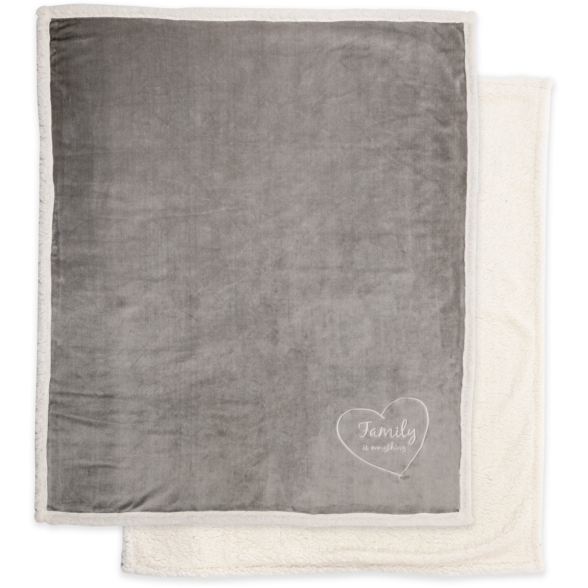 - IN-HOUSE DESIGN: The double-sided blanket has a debossed white embroidered "family is everything" sentiment matched by a heart pattern on the gray plush side of the blanket. The aromatherapeutic candle has a white "family is everything" sentiment and heart design. Socks have a gray ankle, heel, and toe accompanied by a heart and swirl design on a white sock base.