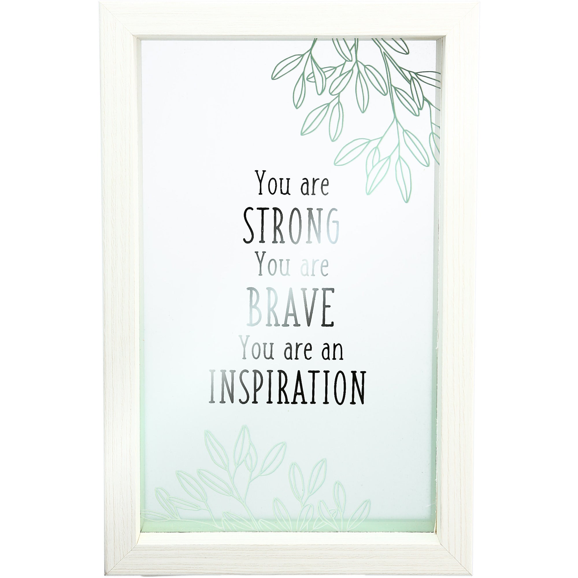 - IN-HOUSE DESIGN: Features mirrored silver "You are strong you are brave you are an inspiration" text decal and white floral decals that are printed on the back of the glass to show through on the front. Comes packaged in a protective box.