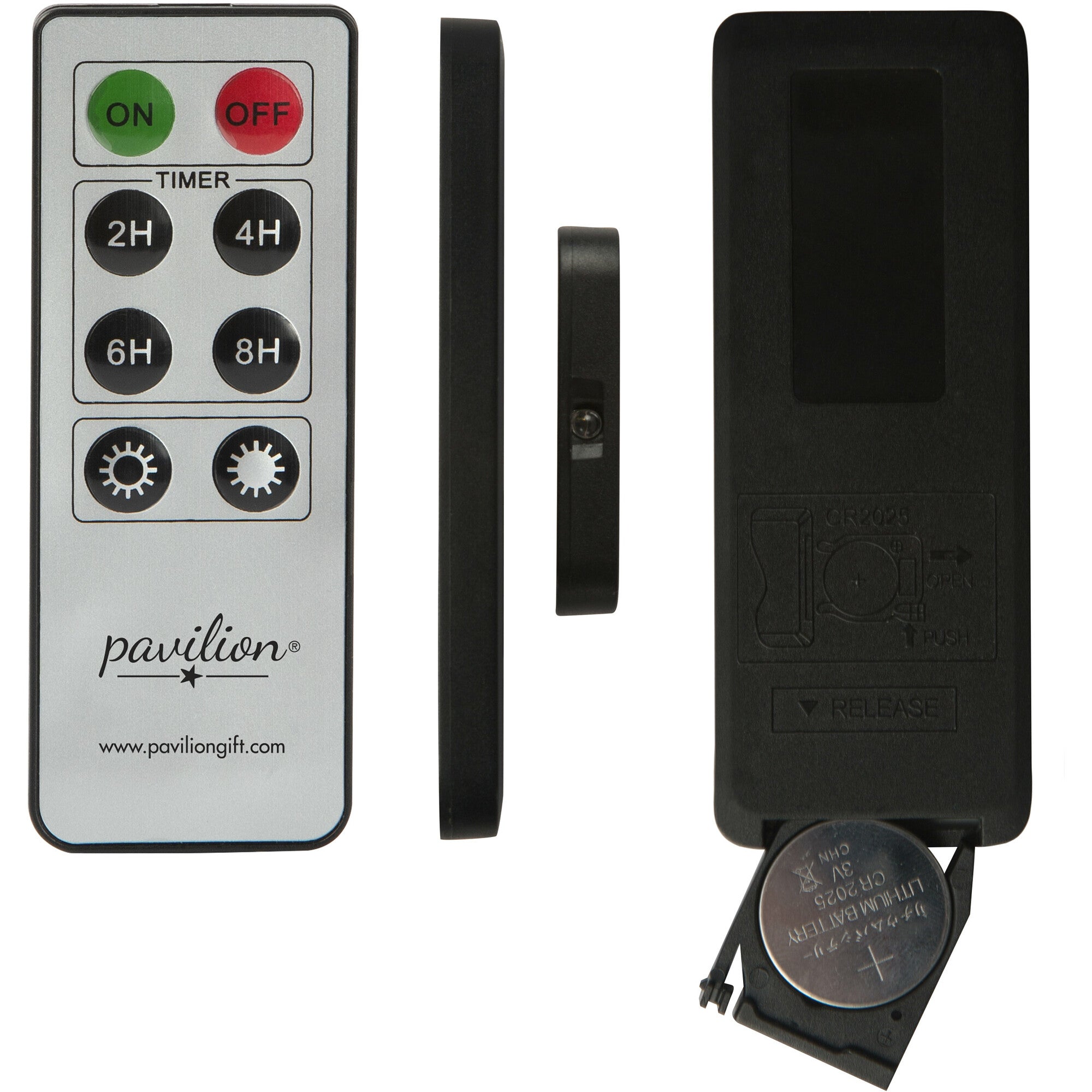 • CARE INSTRUCTIONS: Wipe clean only. Candle requires three AA batteries, not included. Remote requires one CR2025 battery, included.