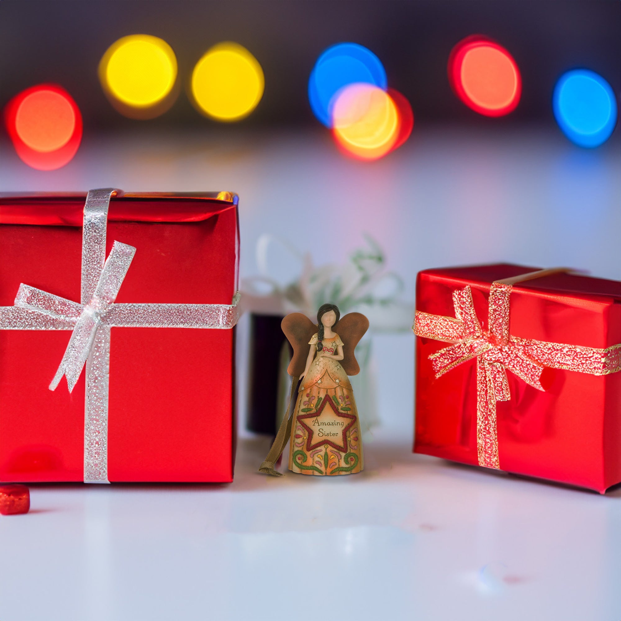 - IN-HOUSE DESIGN: "Amazing Sister" text and accompanying floral detailing are both hand-painted onto the angel.