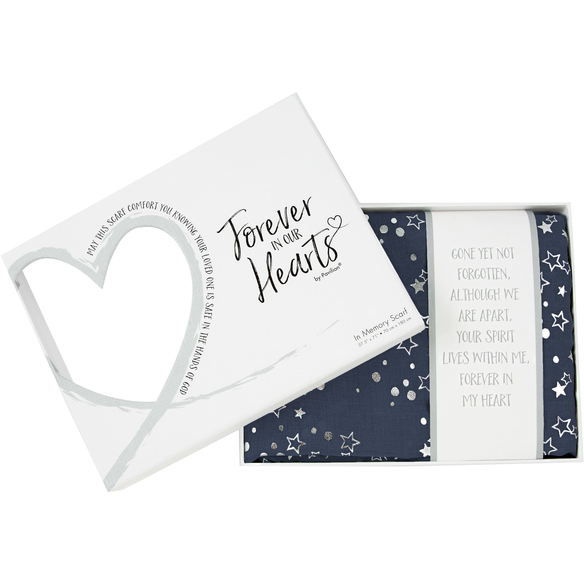 • IN-HOUSE DESIGN: "Gone Yet Not Forgotten, Although We Are Apart, Your Spirit Lives Within Me, Forever In My Heart" text is printed on interior sleeve and is accompanied by printed stars on scarf and a sewn-in tag reading "Always & Forever In Our Hearts".
