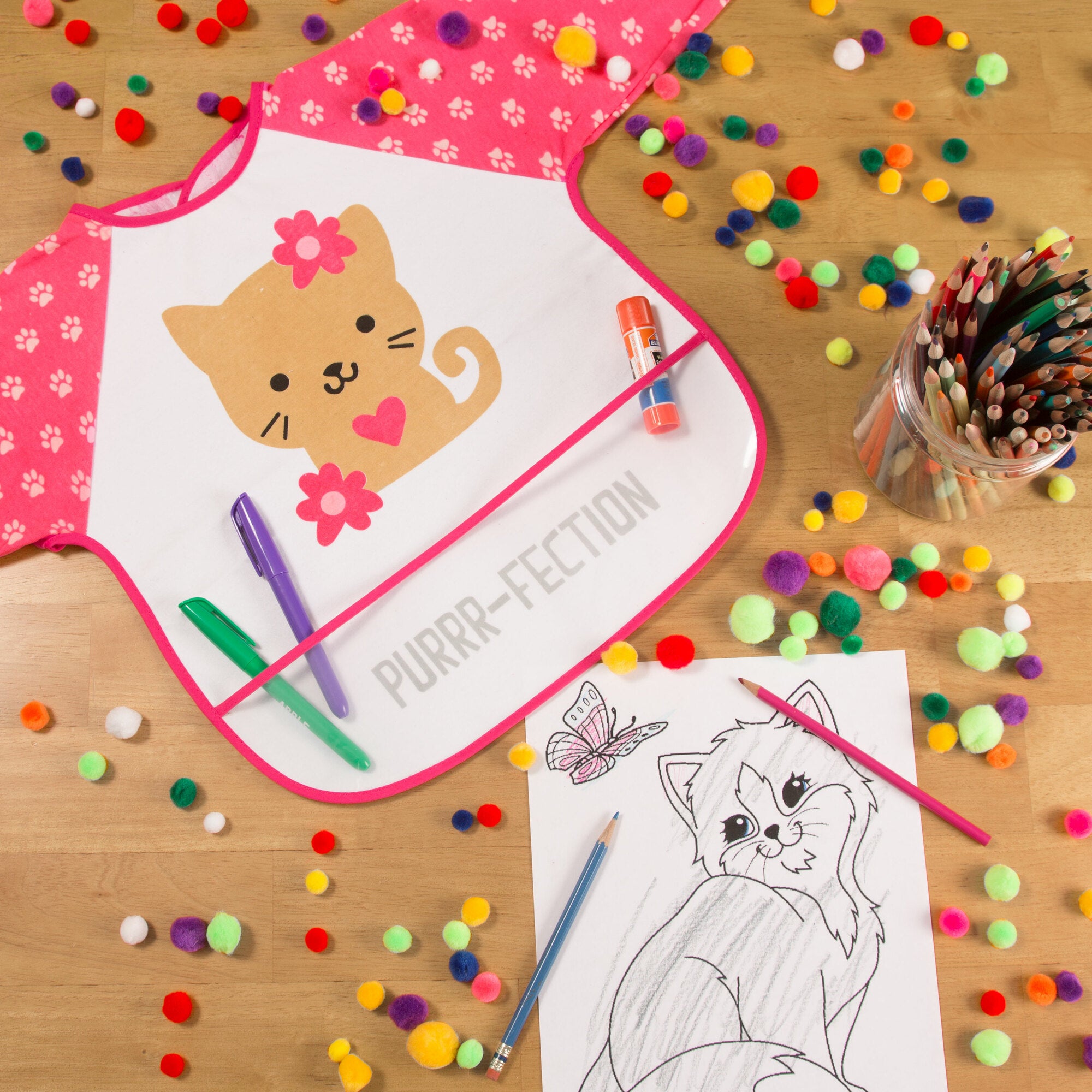 - IN-HOUSE DESIGN: "Izzy & Owie" tag is sewn into the trim alongside a sewn-in kitten image, printed "Purrr-Fection" text and paw print-patterned sleeves.