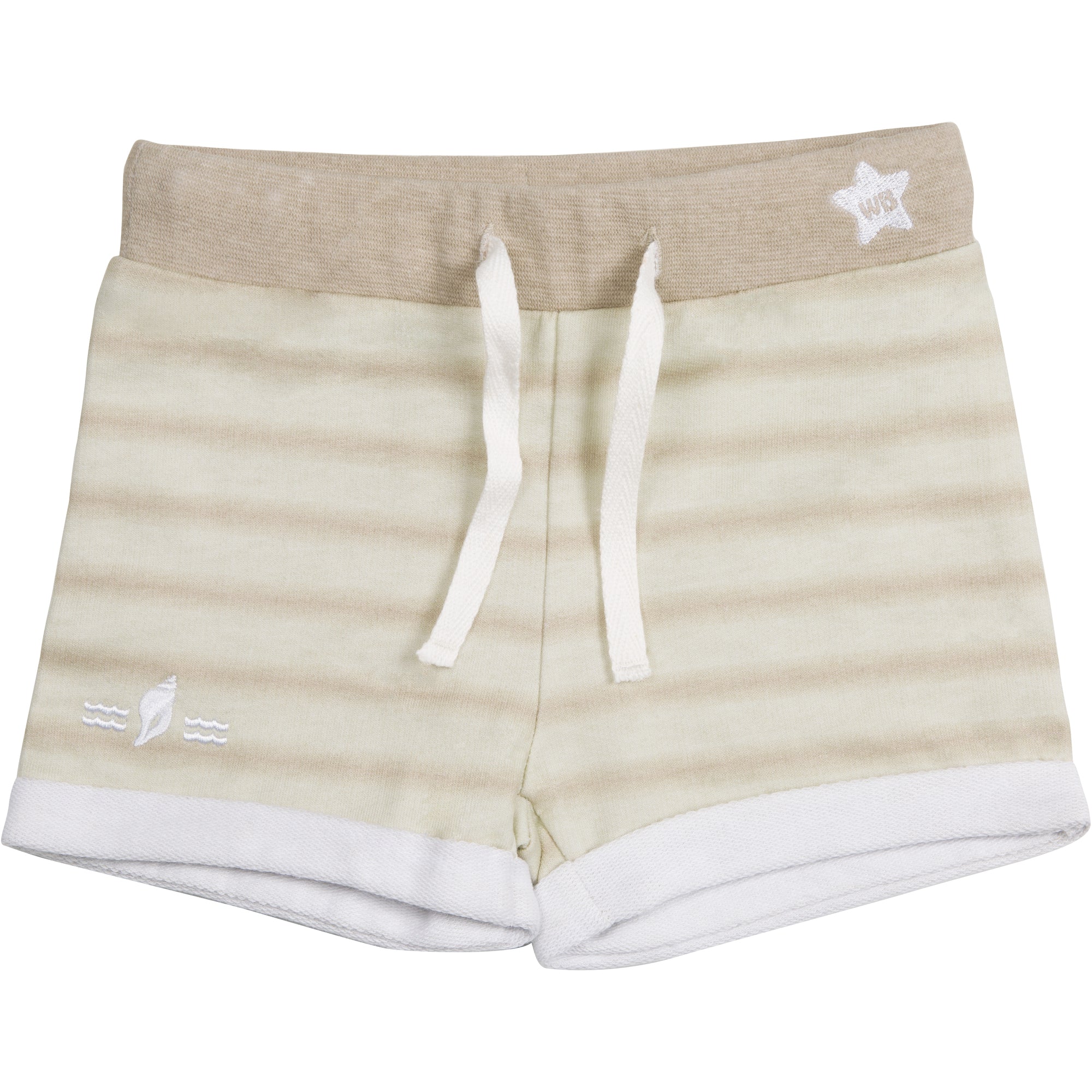 - IN-HOUSE DESIGN: "Beach Bum" text is printed onto the rear of the shorts, while the We Baby logo and seashell icon are embroidered onto the front.