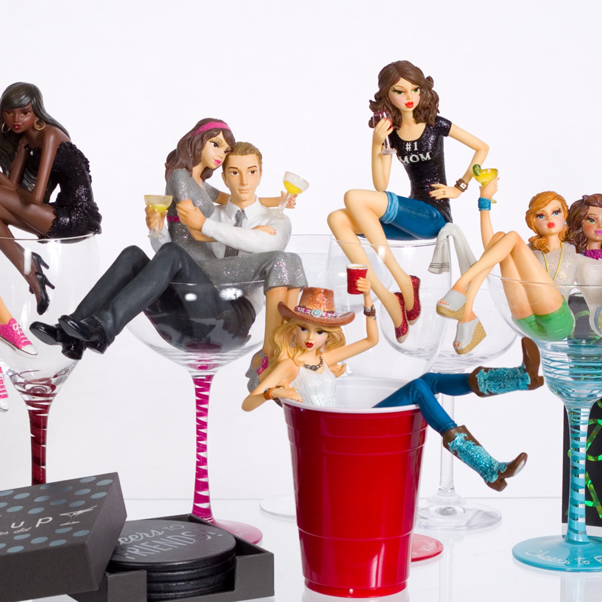 • PREMIUM QUALITY: 10.5" double figurine in a cocktail glass, packaged in a printed box, is made from polyresin and glass.
