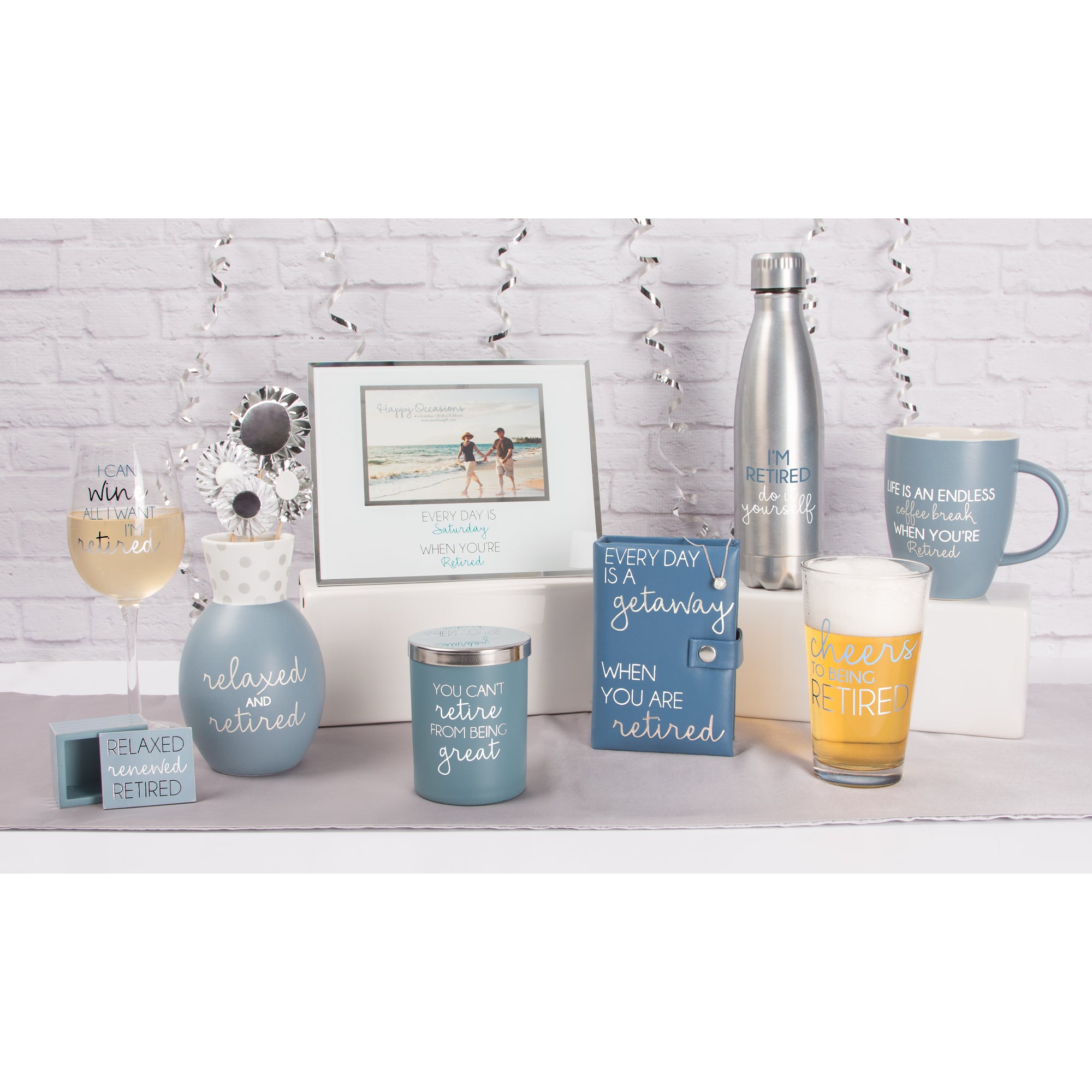 - IN-HOUSE DESIGN: "Every Day Is A Getaway When You Are Retired" text is heat-stamped onto the top of the box.