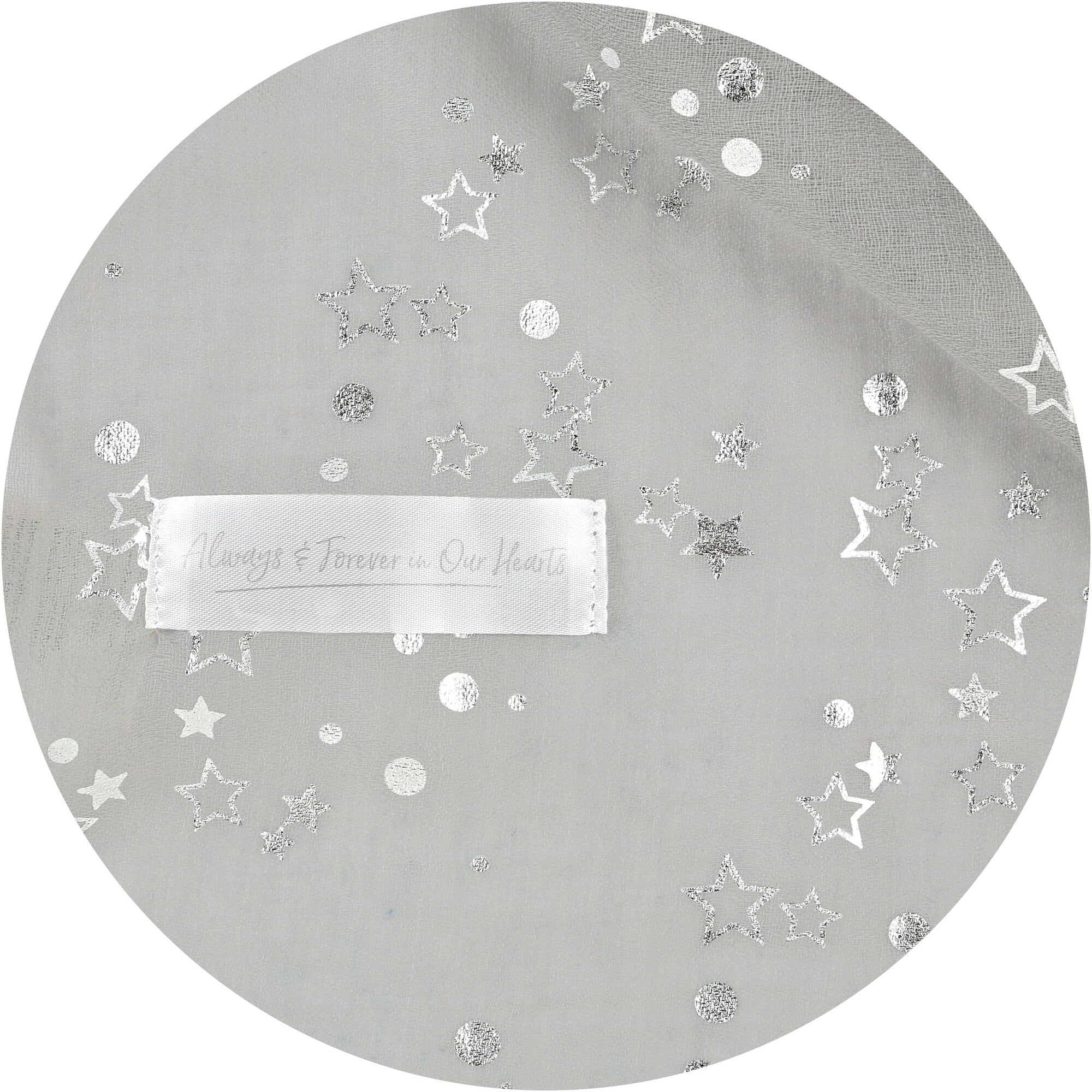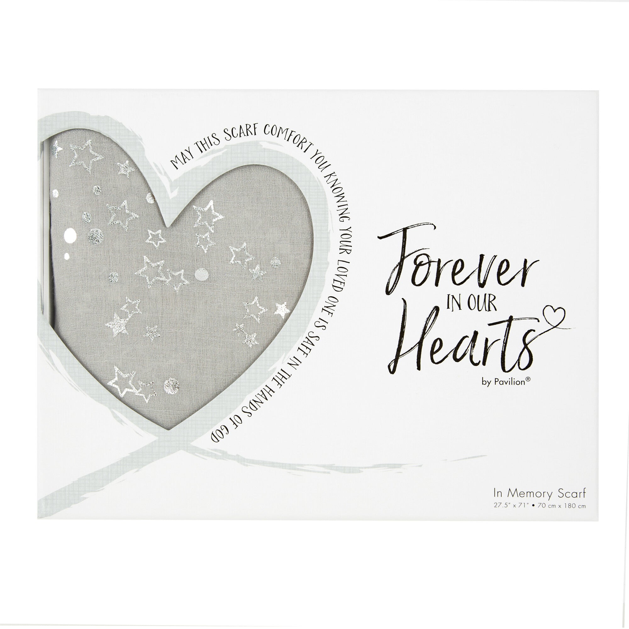 - IN-HOUSE DESIGN: "Gone Yet Not Forgotten, Although We Are Apart, Your Spirit Lives Within Me, Forever In My Heart" text is printed on interior sleeve and is accompanied by printed stars on scarf and a sewn-in tag reading "Always & Forever In Our Hearts".