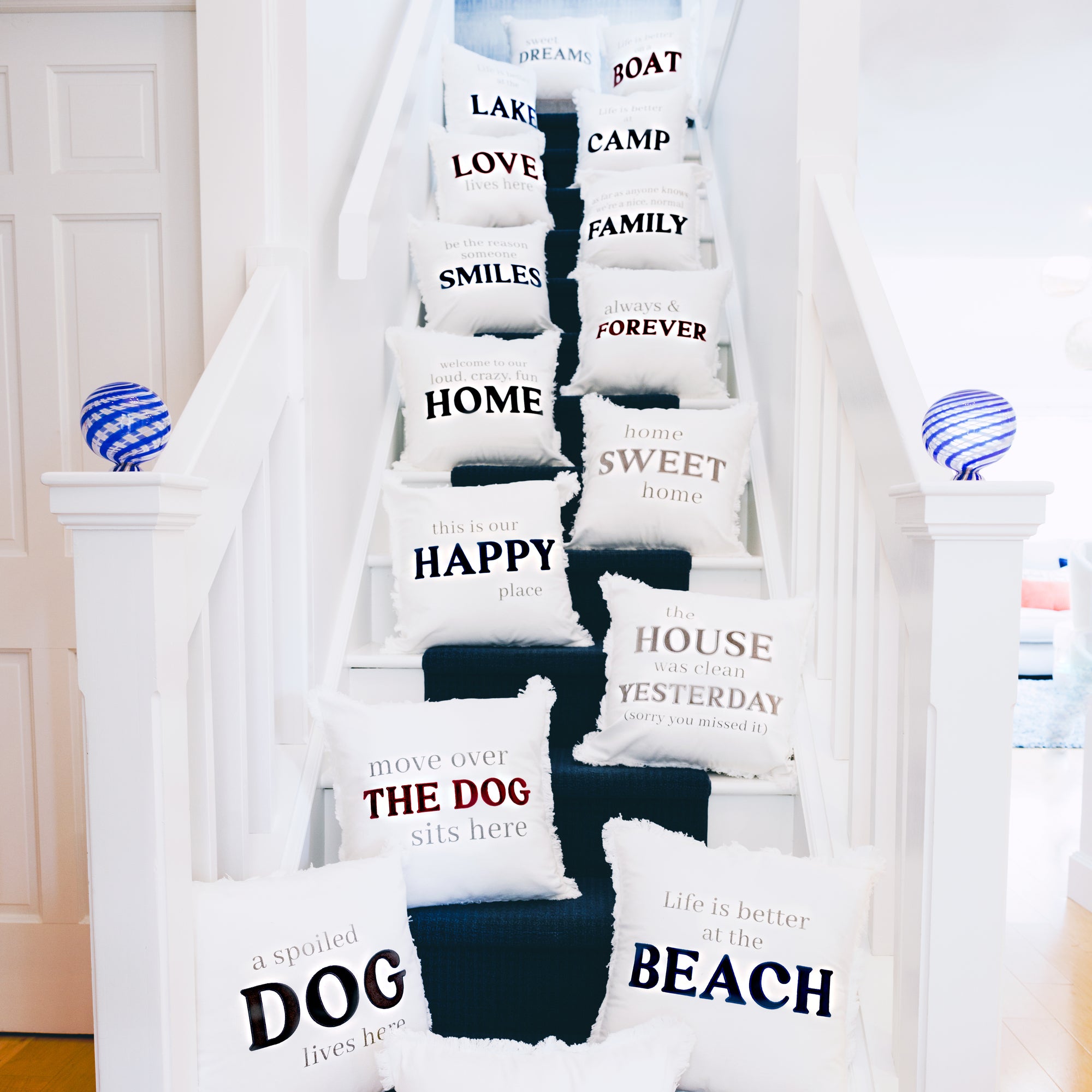 - IN-HOUSE DESIGN: "This Is Our" & "Place" sentiments are screen printed onto the front side of the case, whereas "Happy" is a velvet-finished applique sewn between the phrases.