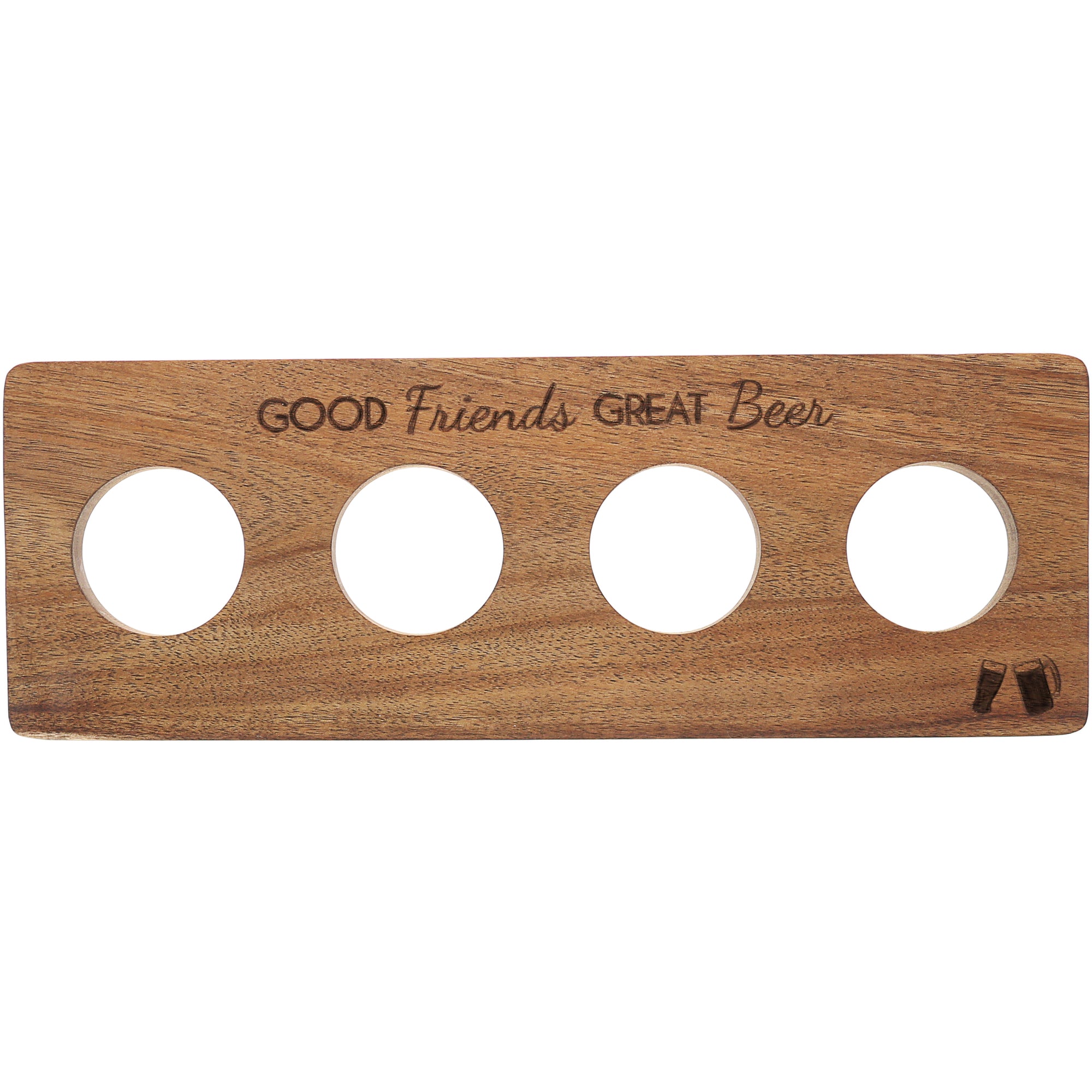 - PREMIUM QUALITY: 15" long x 5.25" wide x 1.5" tall rounded edge acacia wood flight board has four cut-out holes to place 15 oz pilsner glasses in. Each board is a unique piece of wood; color can vary.