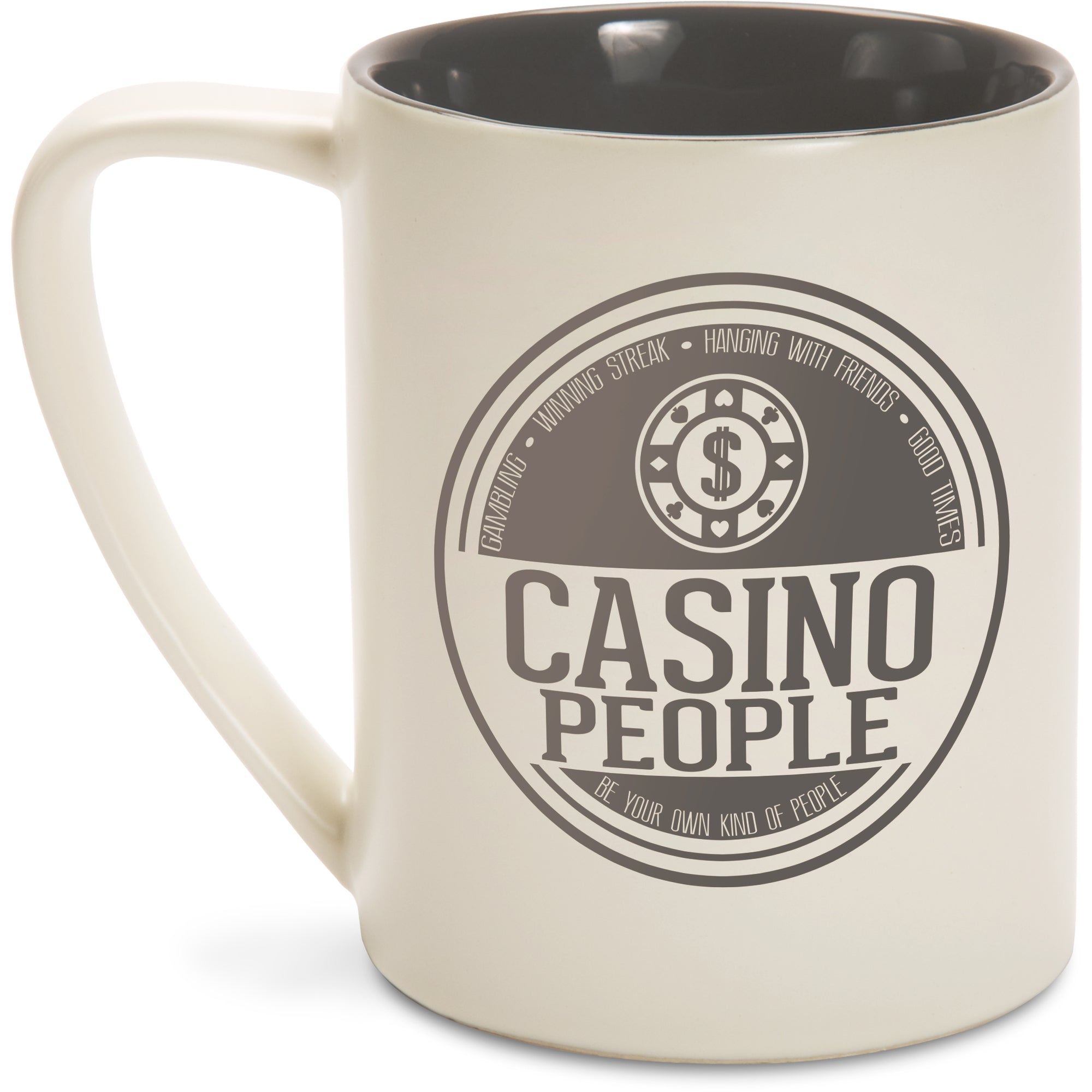 - IN-HOUSE DESIGN: "Casino People" decal, including "Gambling; Winning Streak; Hanging With Friends; Good Times" text is printed on both sides of the mug, as are the accompanying blank logo and "Be Your Own Kind Of People" text.