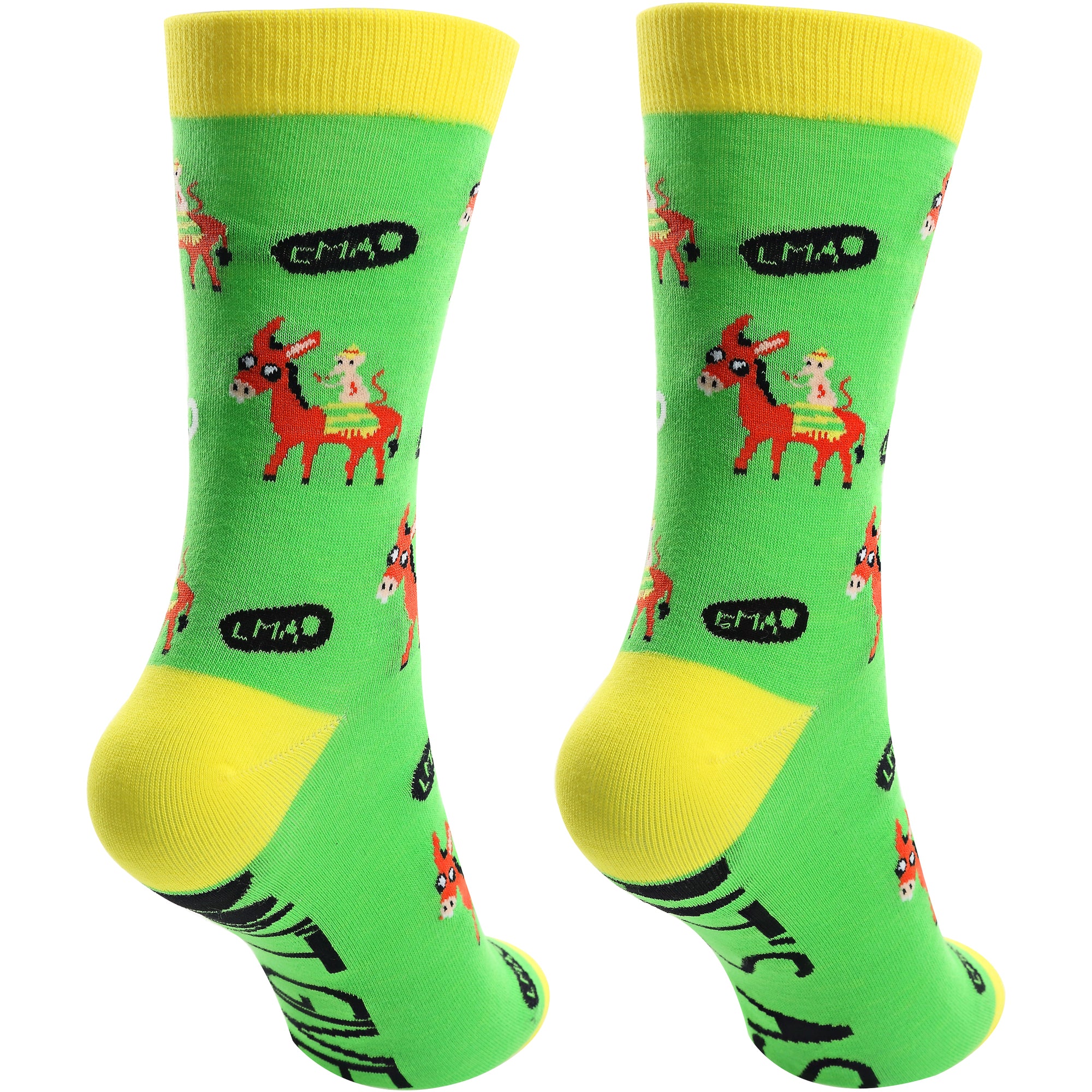 • IN-HOUSE DESIGN: "Don't Give A Rat's Ass" text is sewn into the base of the socks and is accompanied by a donkey pattern with "LMAO" text.