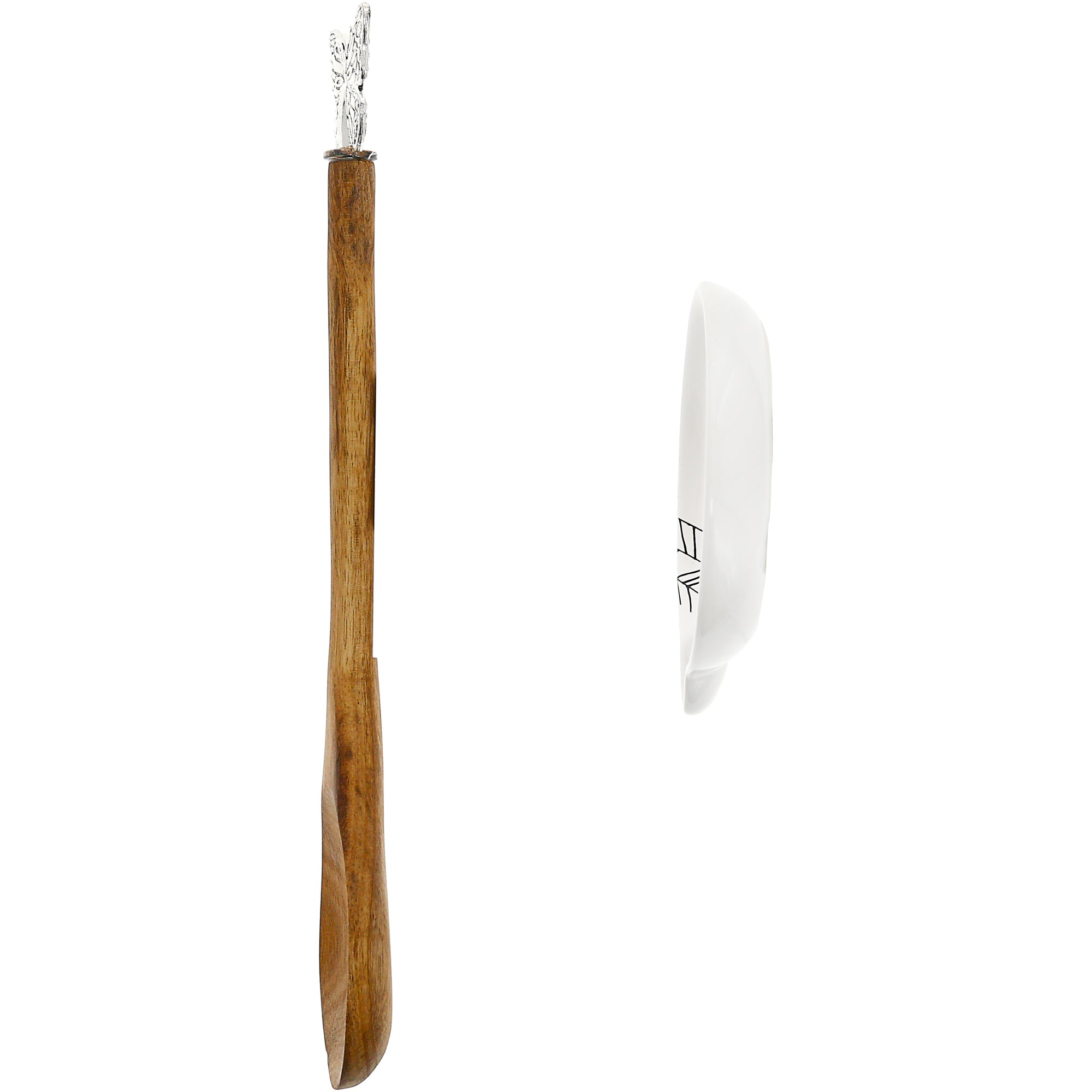 - PREMIUM QUALITY: This set has a 4" wide spoon rest and an 11.25 "tall wooden spoon. The spoon rest is made from premium ceramic, and the coordinating spoon is made from acacia wood and zinc alloy. The set comes securely packaged in a gift-to-go box with a clear acetate cover.