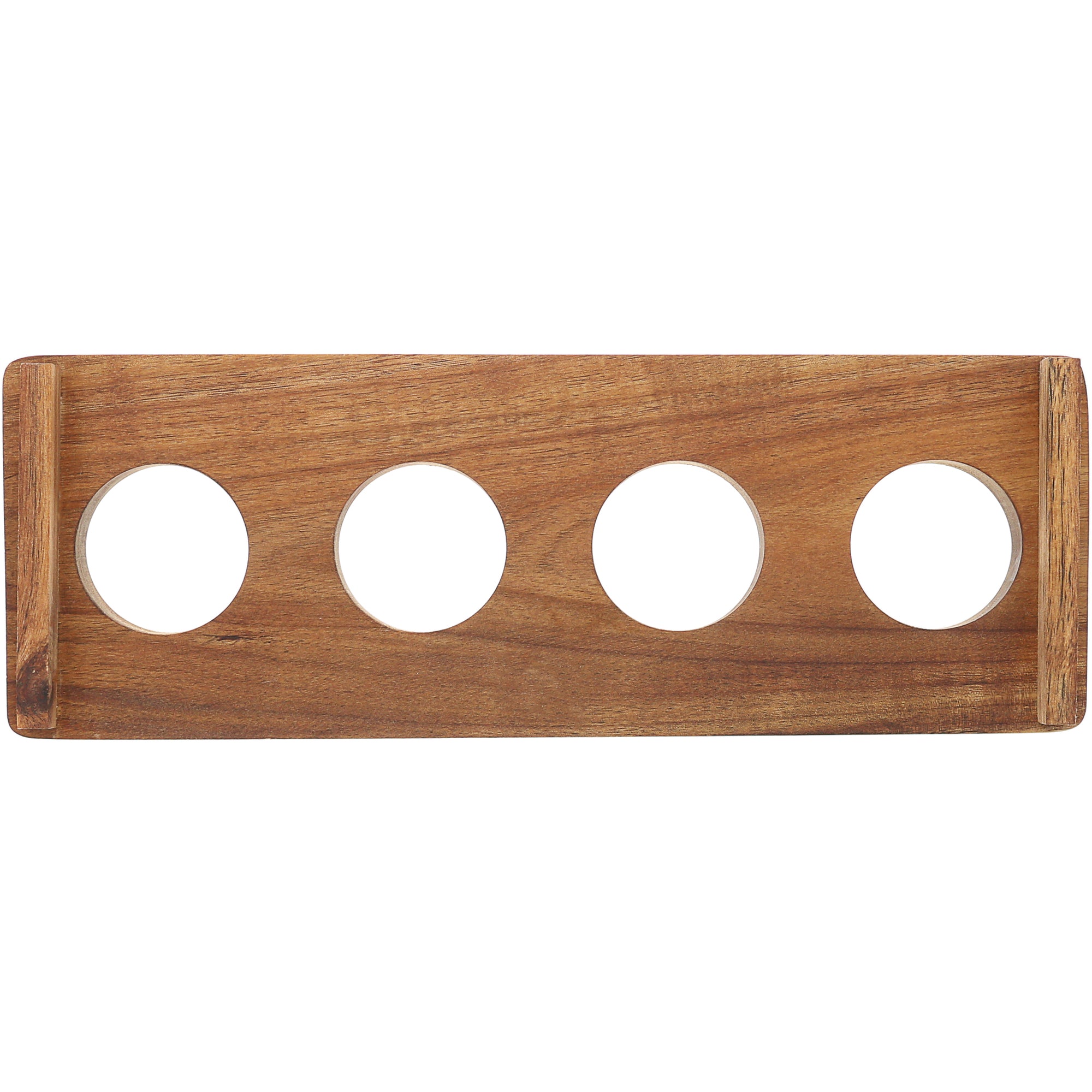 - PREMIUM QUALITY: 15" long x 5.25" wide x 1.5" tall rounded edge acacia wood flight board has four cut-out holes to place 15 oz pilsner glasses in. Each board is a unique piece of wood; color can vary.
