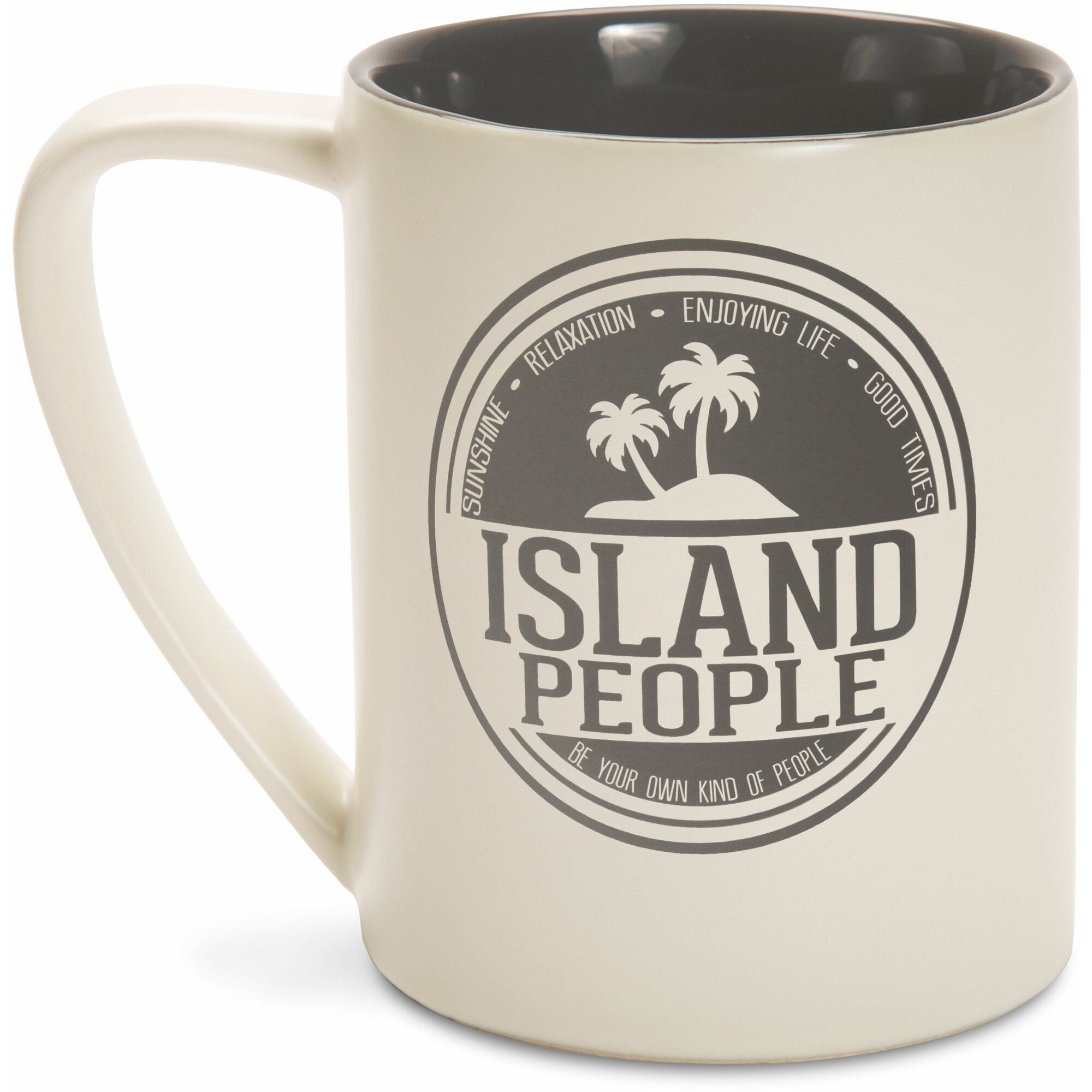 - IN-HOUSE DESIGN: "Island People" decal, including "Sunshine - Relaxation - Enjoying life - Good times" text, is printed on both sides of the mug, as are the accompanying palm tree logo and "Be Your Own Kind Of People" text.