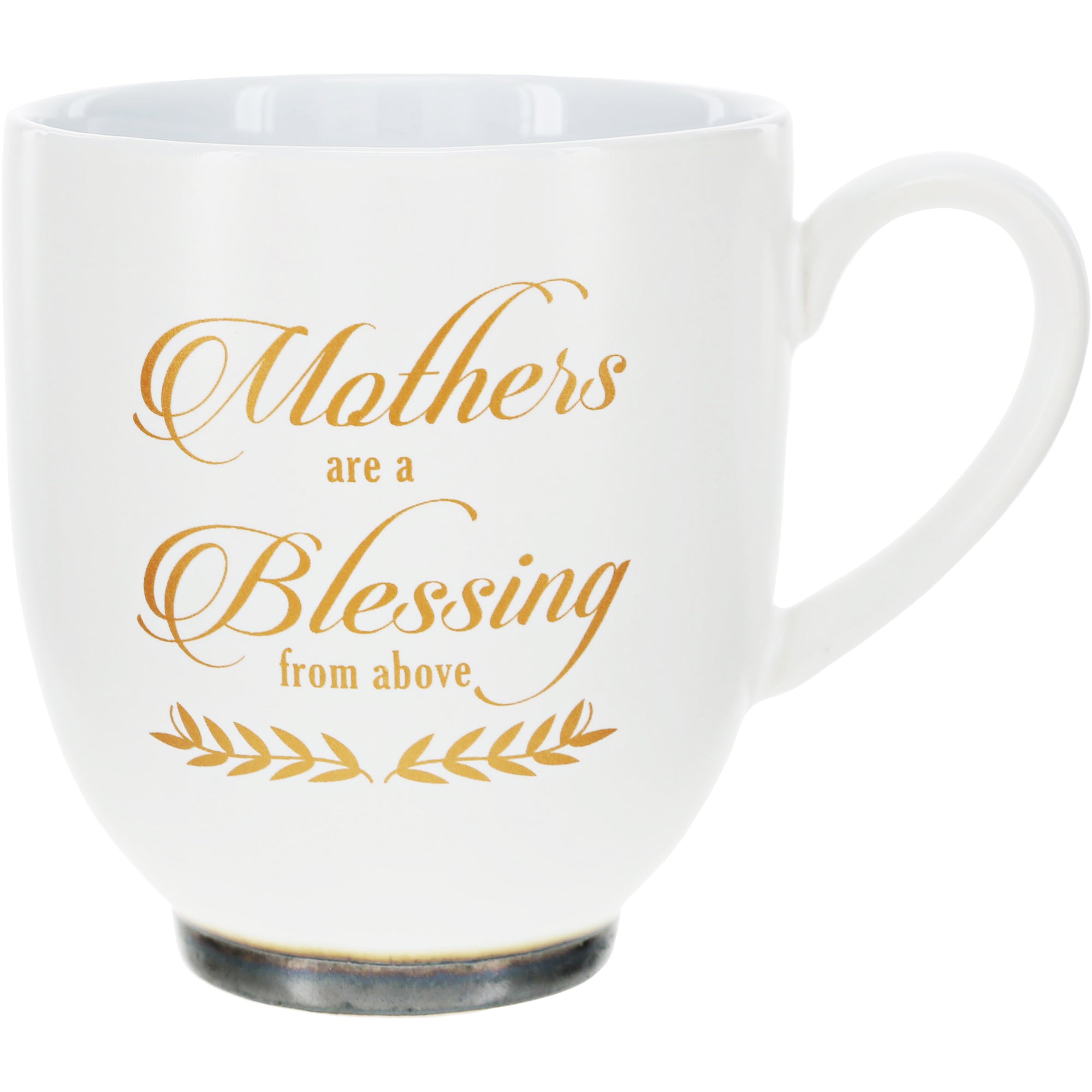 • IN-HOUSE DESIGN: "Mothers Are A Blessing From Above" text and accompanying leaf icon decals are applied to the front of the mug.