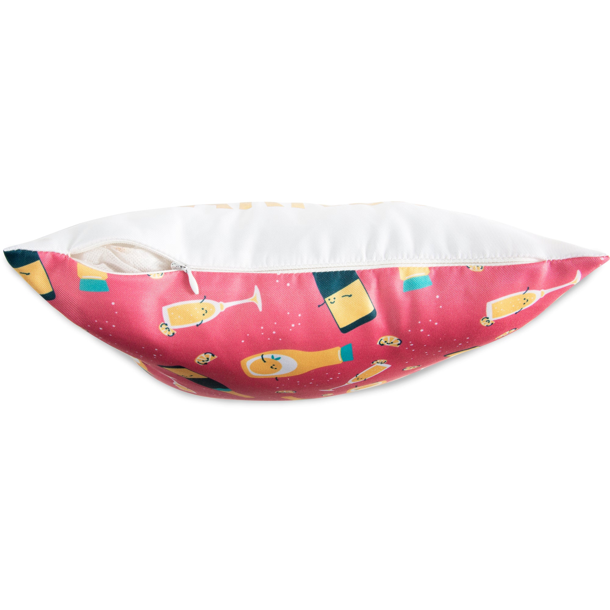 - IN-HOUSE DESIGN: "Start And End Your Day Sparkling" text is printed on the front, while the back features a champagne bottle, orange juice, and glass pattern.