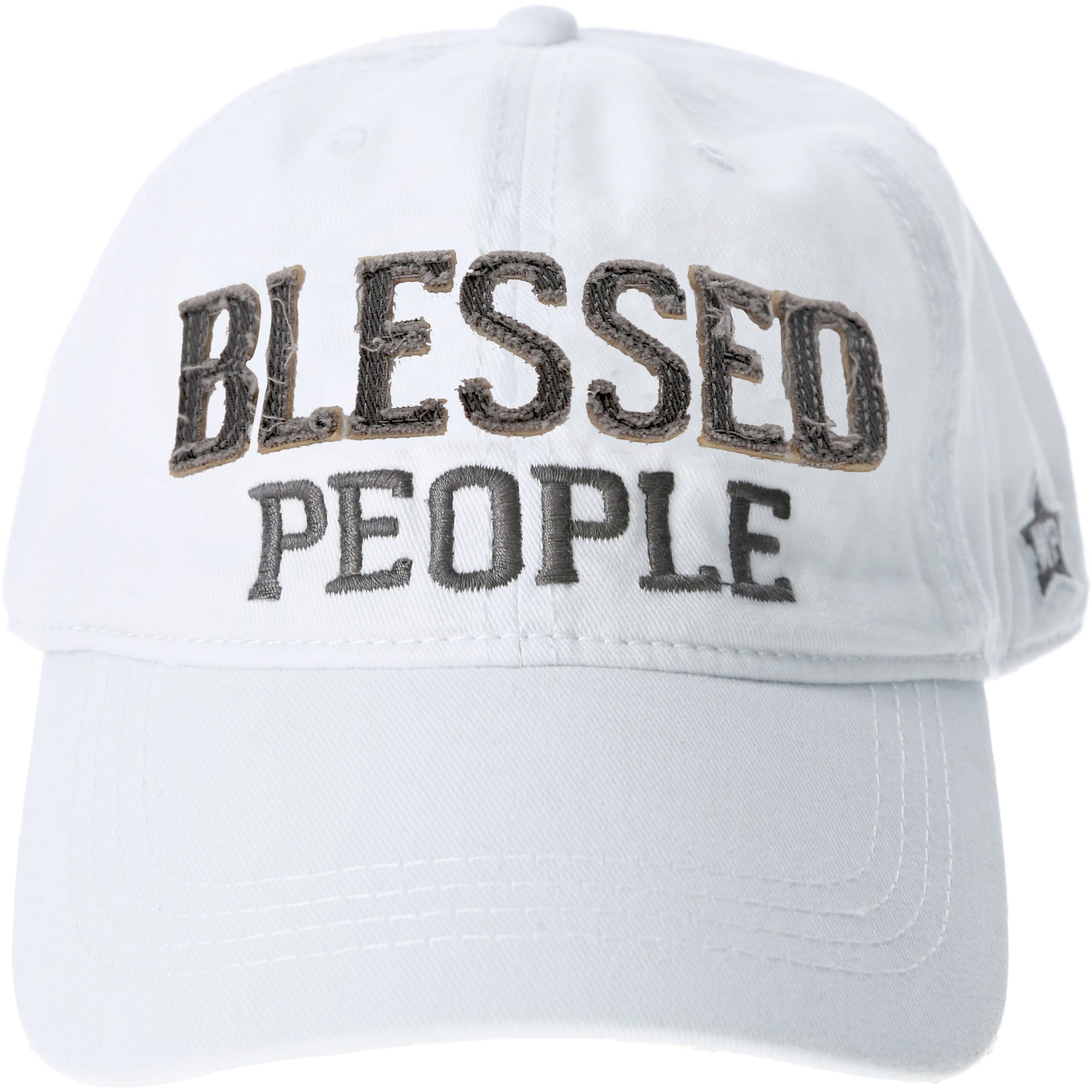 - IN-HOUSE DESIGN: Snap with an adjustable strap that can be tucked away into the backside hat. Features a "Blessed" white sentiment sewn in with a frayed rustic look edging. "People" is embroidered below. In addition, a "WP" star-shaped logo is sewn into the side of the hat. Finally, a round outlined "Blessed People" screen is printed with a triple cross pattern on the hat's bottom brim.