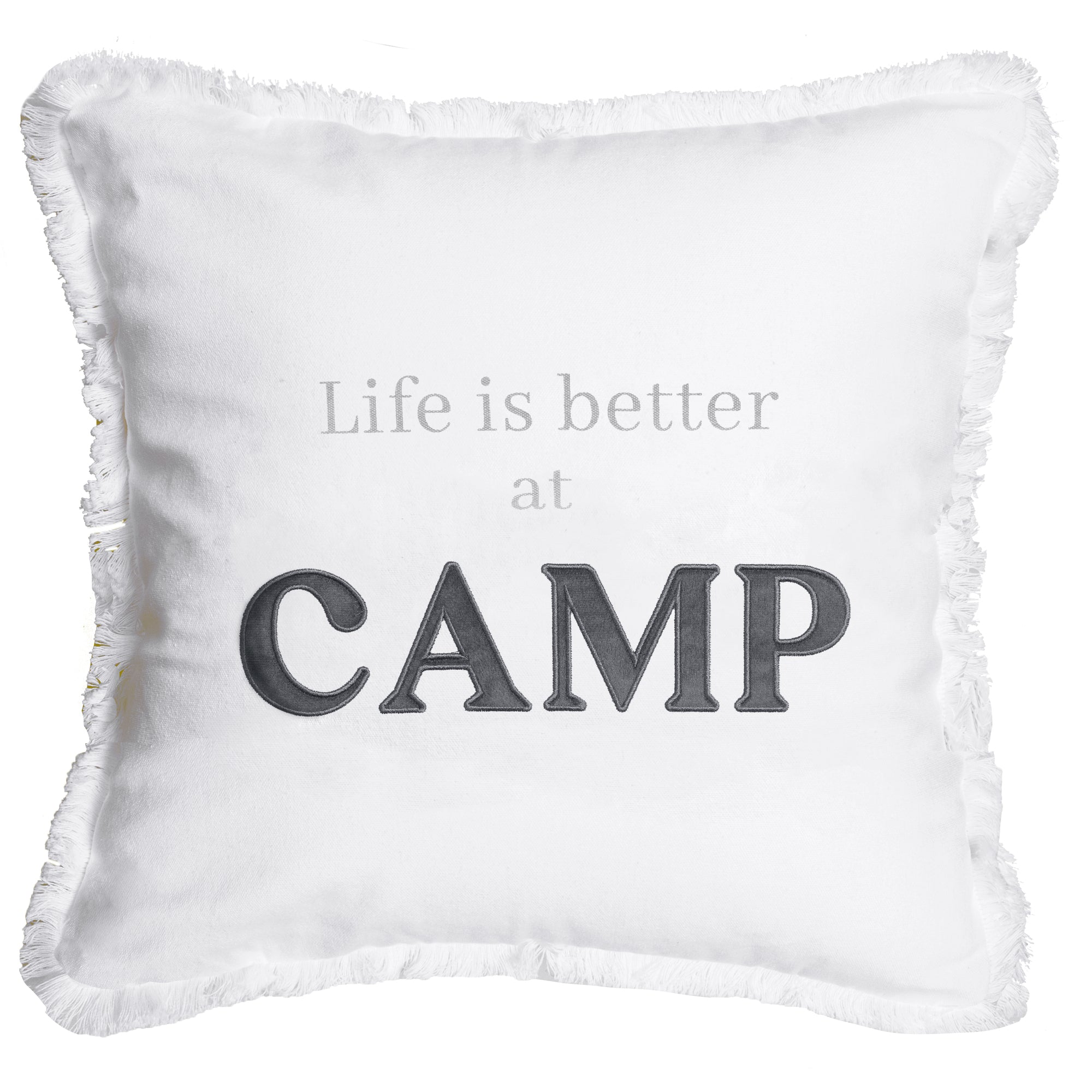 - IN-HOUSE DESIGN: "Life Is Better At" sentiment is screen printed onto the front side of the case, whereas "Camp" is a velvet-finished applique sewn below.
