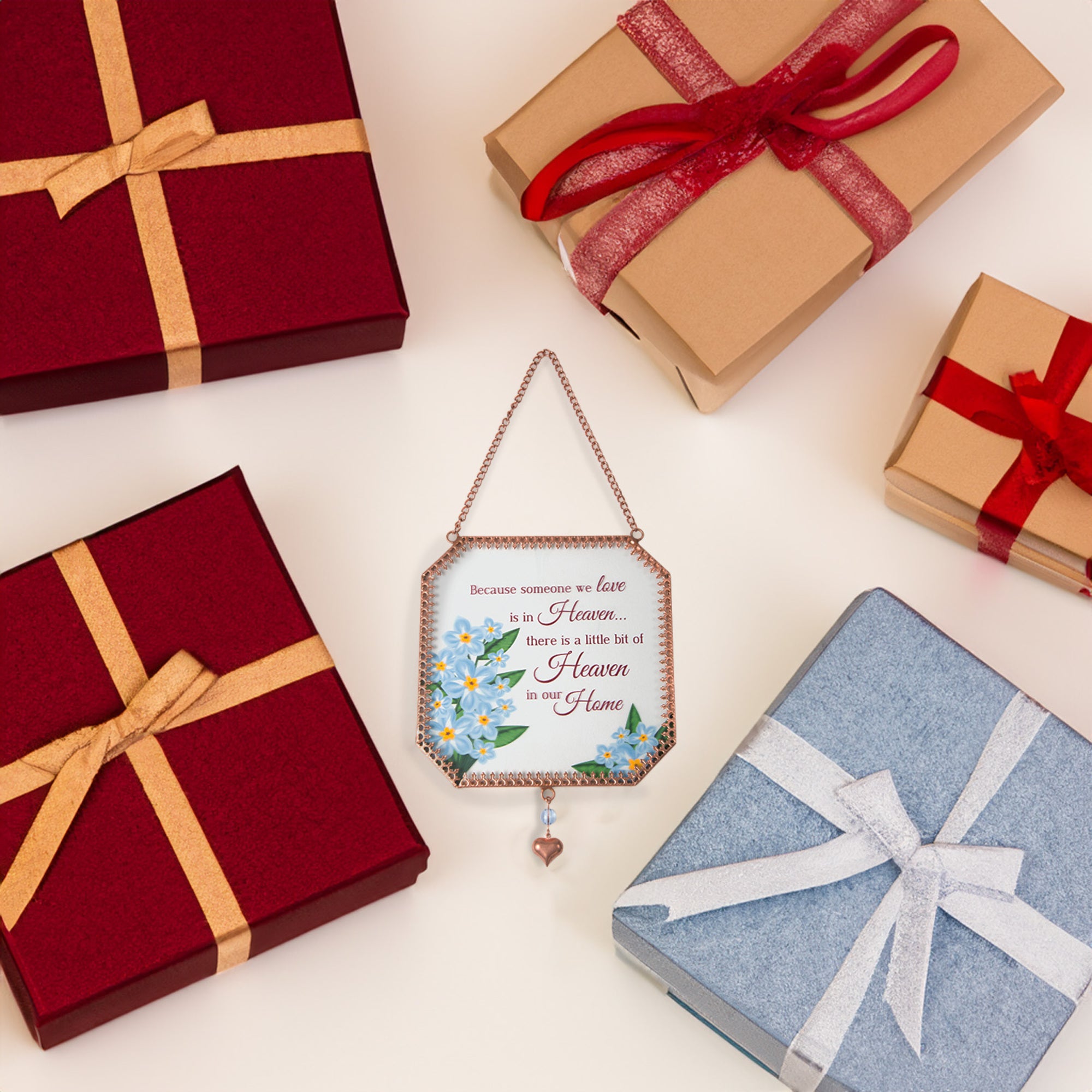 • IN-HOUSE DESIGN: Features the comforting phrase, “Because Someone We Love Is In Heaven… There Is A Little Bit Of Heaven In Our Home,” printed directly onto the glass. The delicate floral design adds a serene and decorative touch, making it a timeless memorial keepsake.