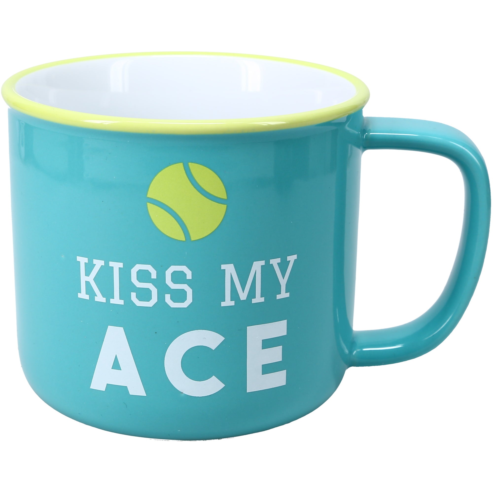 - IN-HOUSE DESIGN: Glossy "Kiss My Ace" text and tennis ball image are both heat-printed onto the front of the mug.