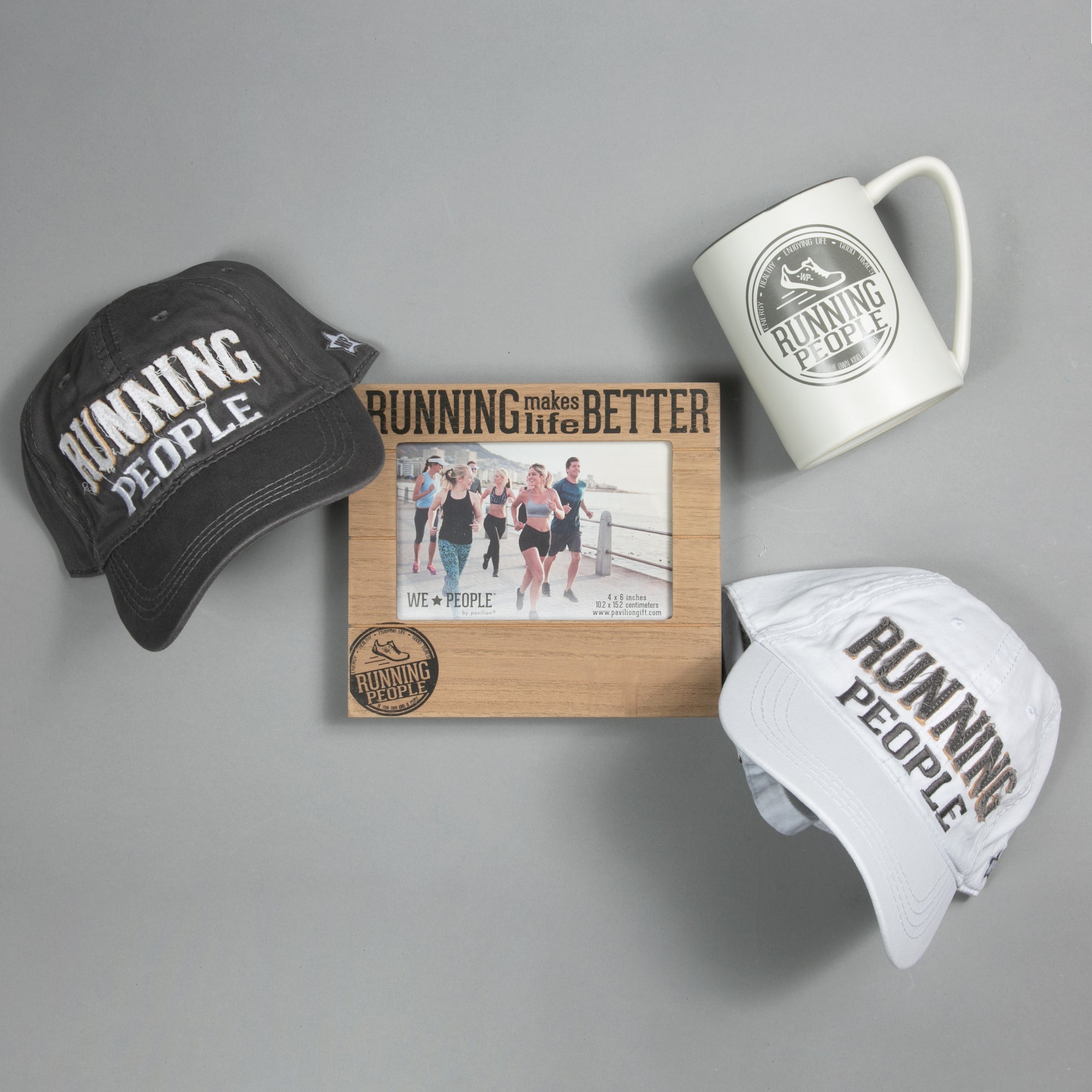 - IN-HOUSE DESIGN: "Running People" decal, including "Energy - Healthy - Enjoying Life - Good Times" text is printed on both sides of the mug, as are the accompanying shoe logo and "Be Your Own Kind Of People" text.