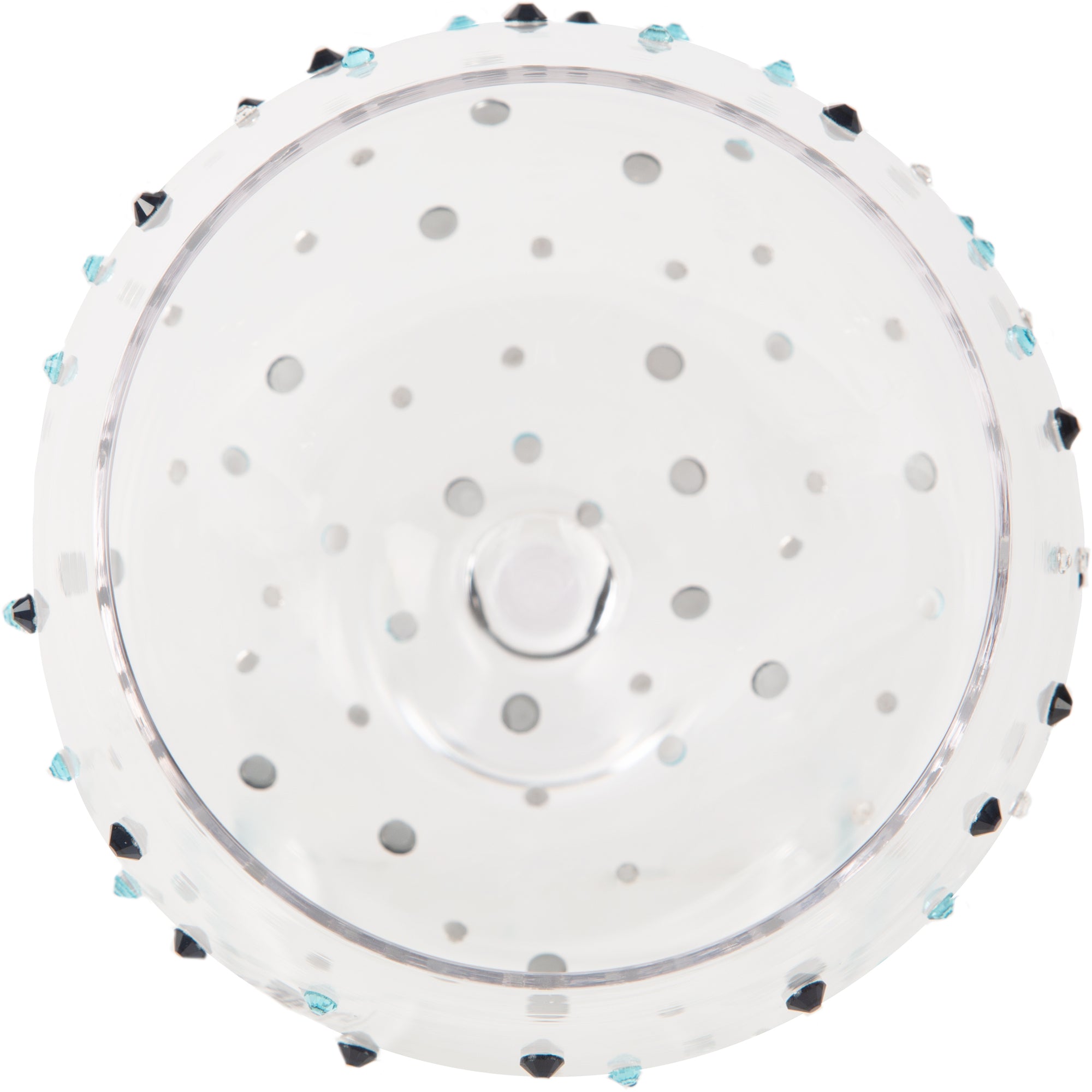 - IN-HOUSE DESIGN: Individual blue-colored glass gemstones are hand-placed onto glass.