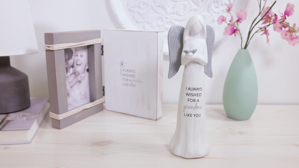 - IN-HOUSE DESIGN: "I Always Wished For A Grandma Like You" sentiment decal is printed with varying light and dark grays with san serif and cursive font combo on the midpoint of the front of the dress. Her faceless and simplistic stature will compliment all decor in anyone's home.