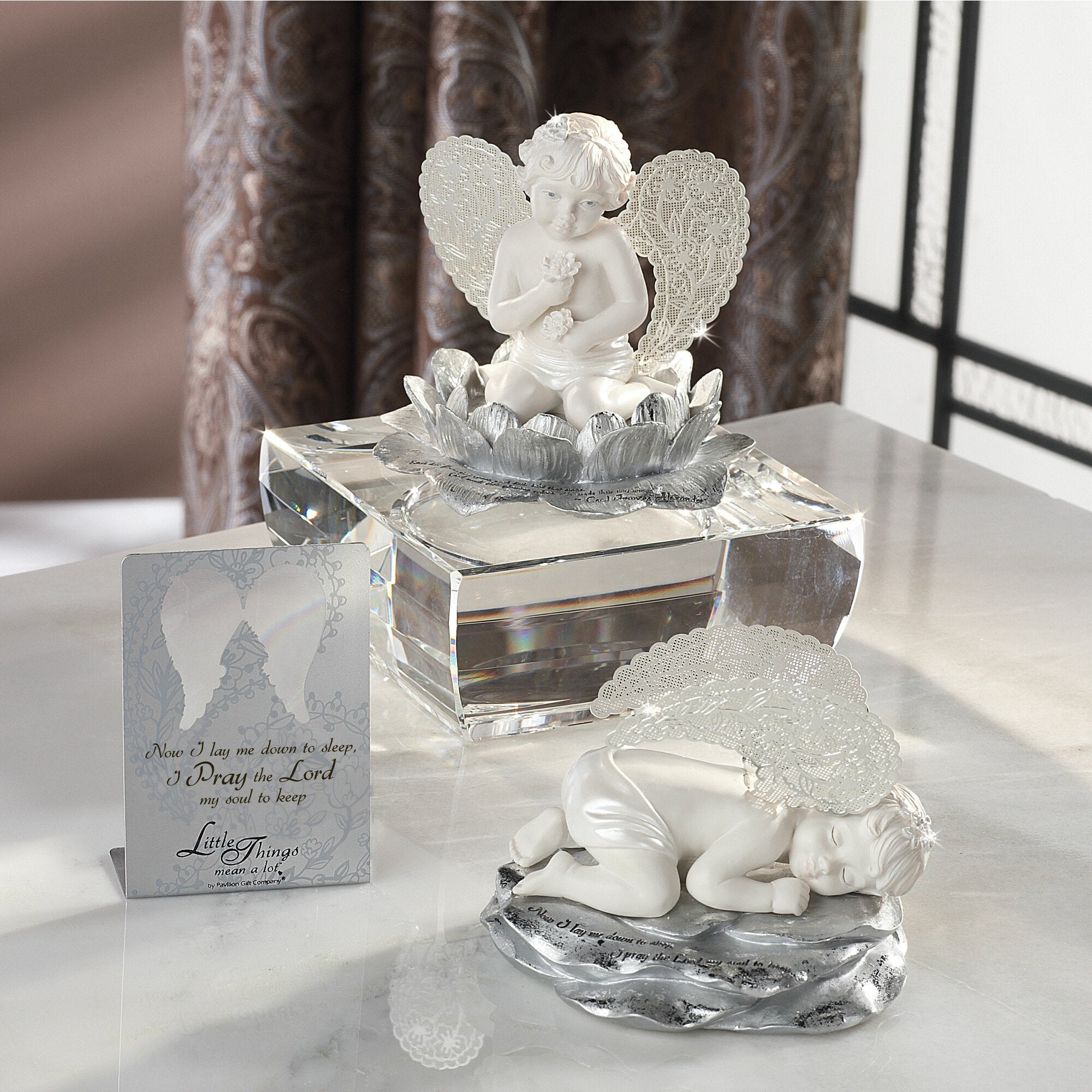 - PREMIUM QUALITY: 3.5" angel figurine, packaged in a printed box, is made from polyresin and features a metal lilypad-shaped holder.