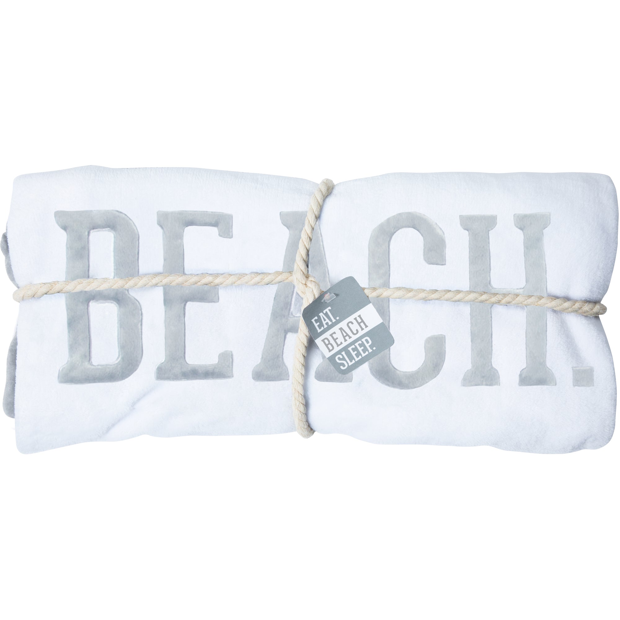 • IN-HOUSE DESIGN: "Eat. Beach. Sleep." text is embroidered onto the blanket, while the "We Baby" tag in sewn-in.