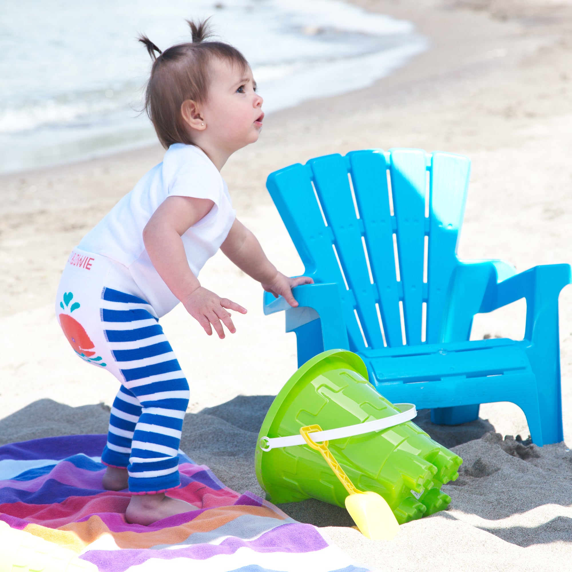 - IN-HOUSE DESIGN: "Izzy & Owie" text is sewn into the waistband, whale image is sewn into the rear, and the stripe pattern of the main material covers the rest of the leggings.